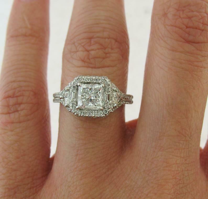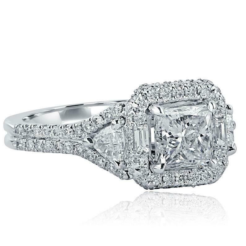 4ct Princess Cut Diamond Halo Split Band Gatsby Women Ring 14k White Gold Finish