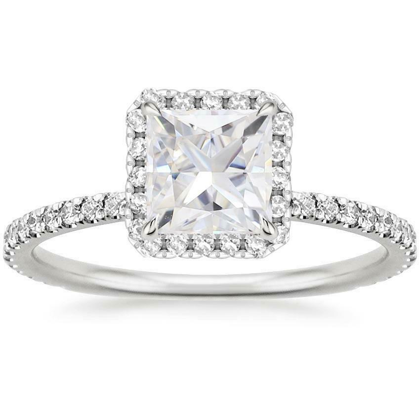 4Ct Princess Cut Diamond High Set Halo Women Engagement Ring 14K White Gold Over