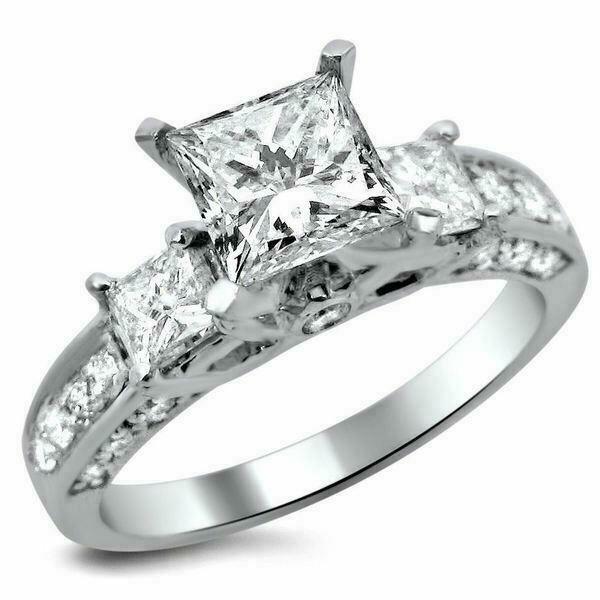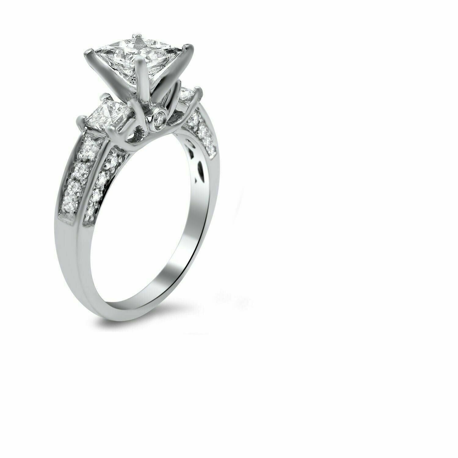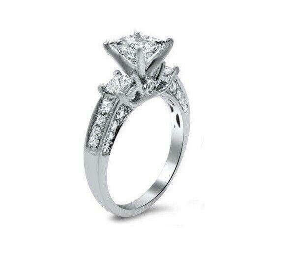 4ct Princess Cut Diamond Solitaire Ring 14K White Gold Finish with Accents