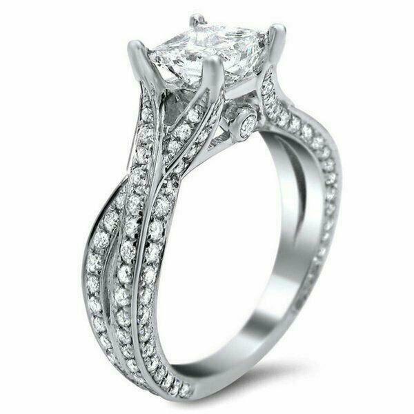 4ct Princess Cut Diamond Split Shank Iced Solitaire Ring 14K White Gold Finish