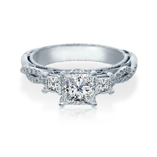 4Ct Princess Cut Diamond Vintage Solitaire Halo Queens Ring 14K White Gold Over