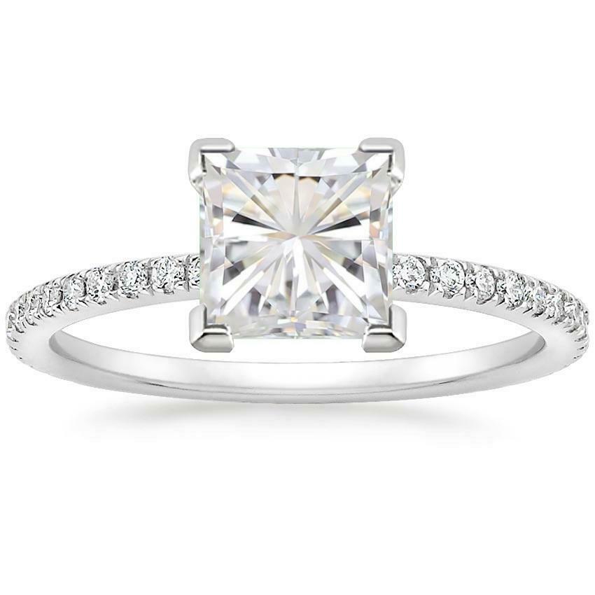4ct Princess Cut VVS1/D Diamond Engagement Ring 14k White Gold Over Round Accent