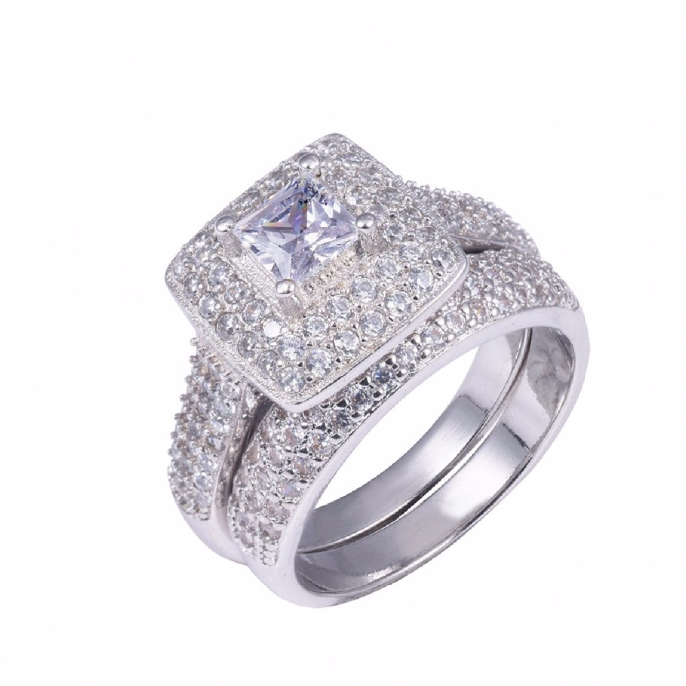 4ct Princess Cut VVS1D Diamond Engagement Ring 18k White Gold Finish Bridal Set