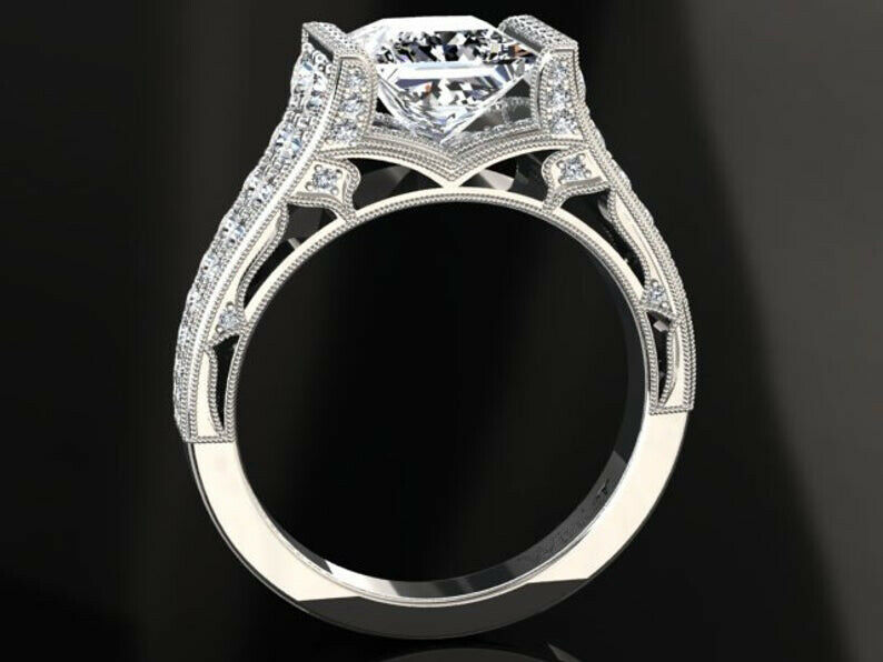 4ct Princess Cut Diamond Dual Row Accent Solitaire Vintage Ring 14k White Gold Finish
