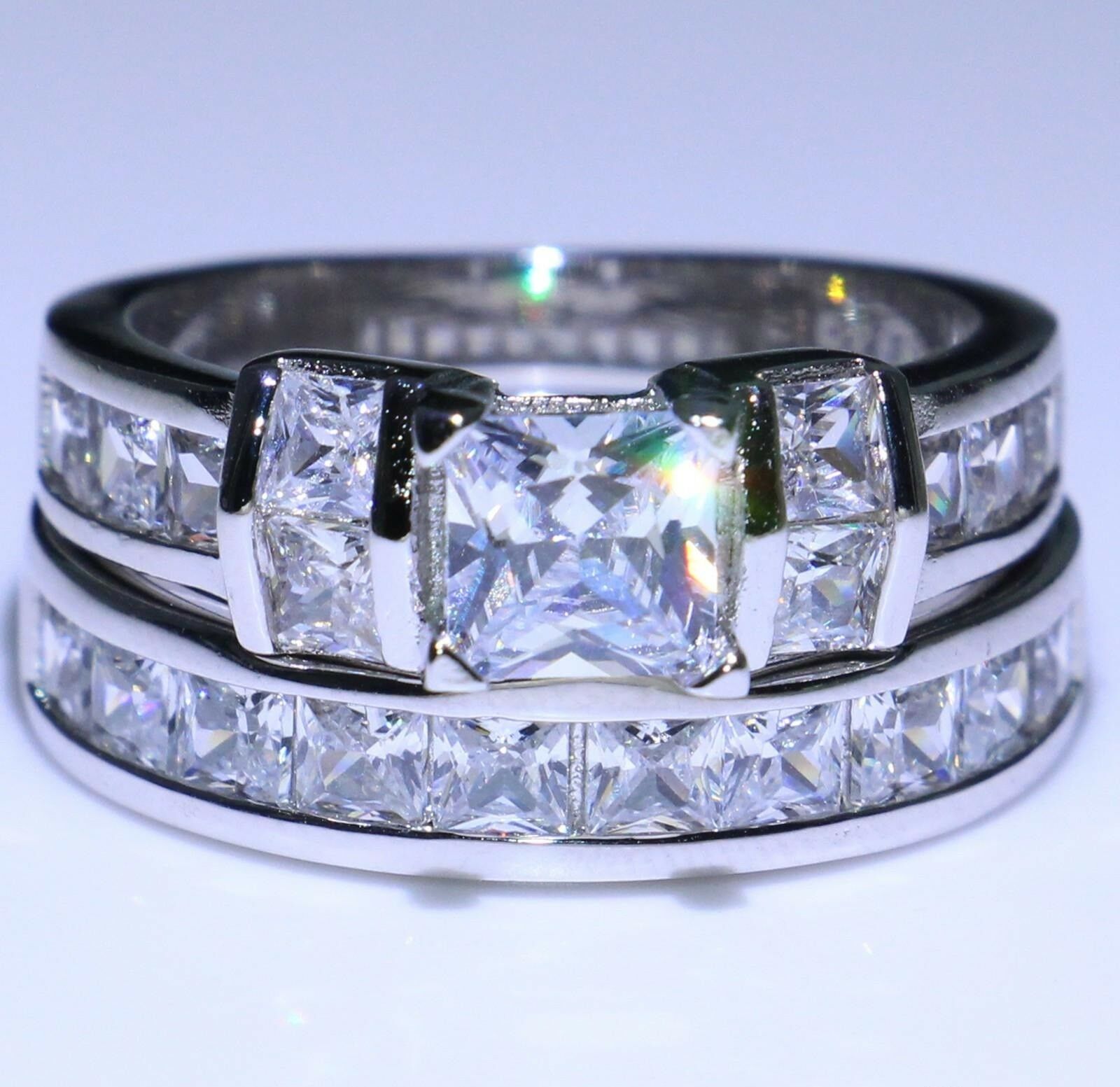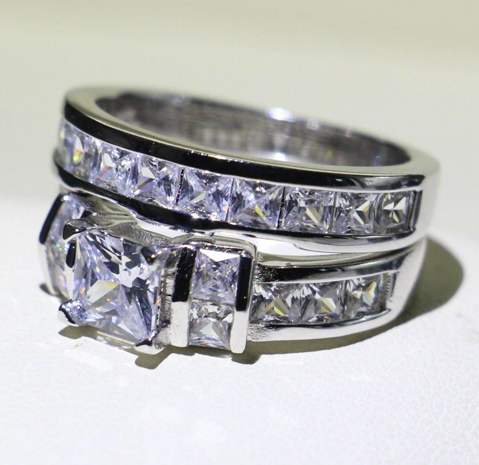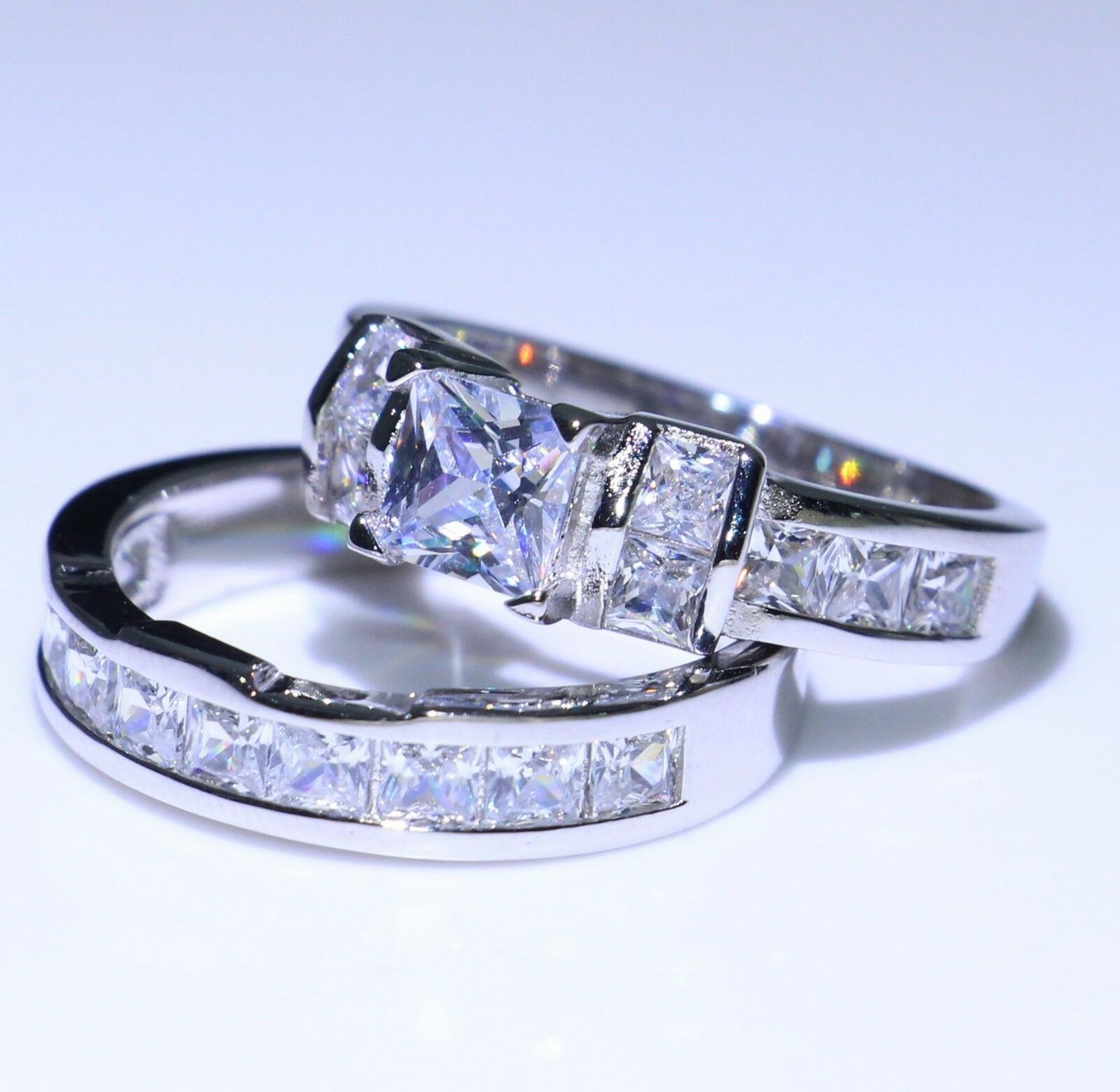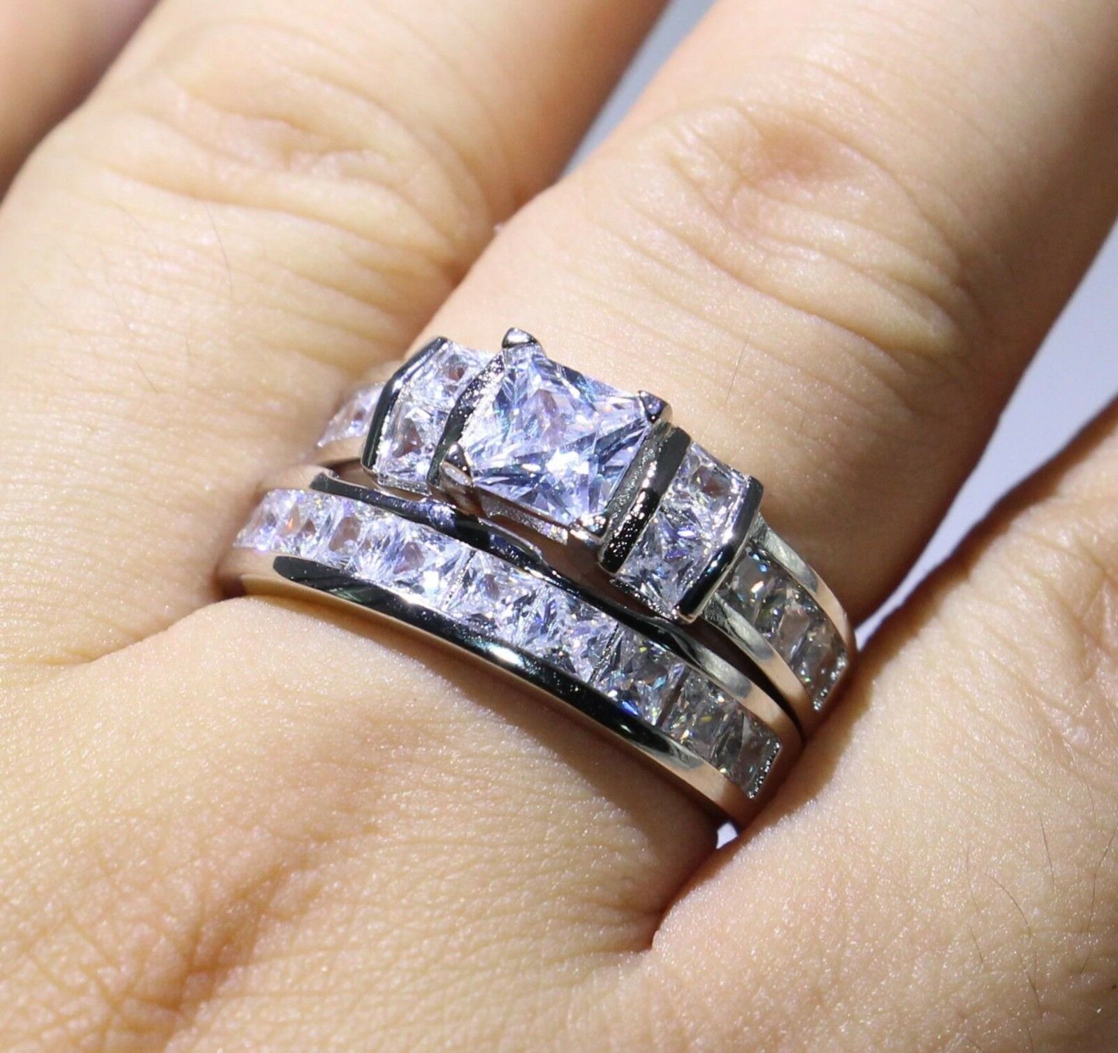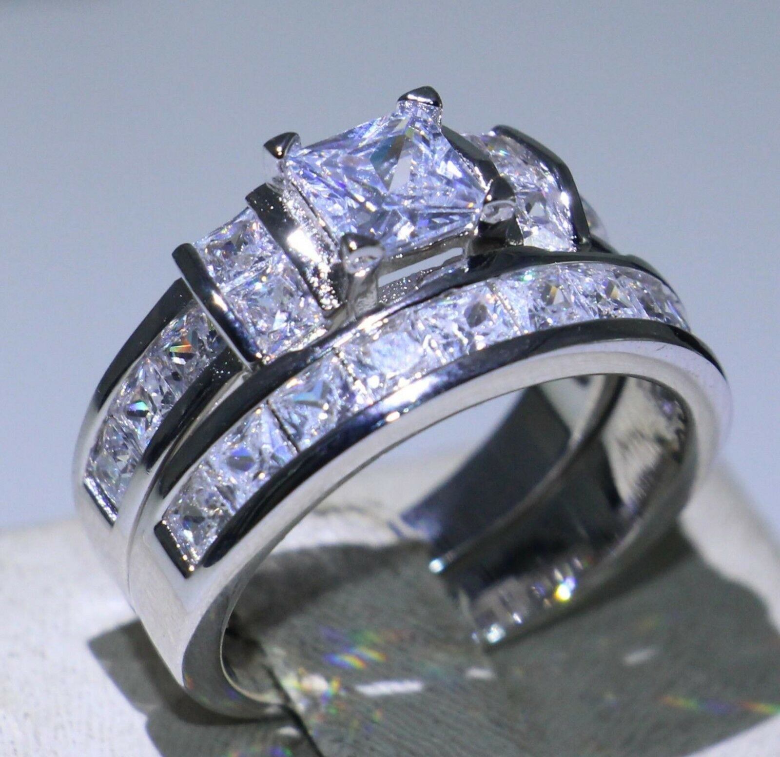 4ct Princess Diamond Engagement Ring 14k White Gold Finish Solitaire Bridal Set