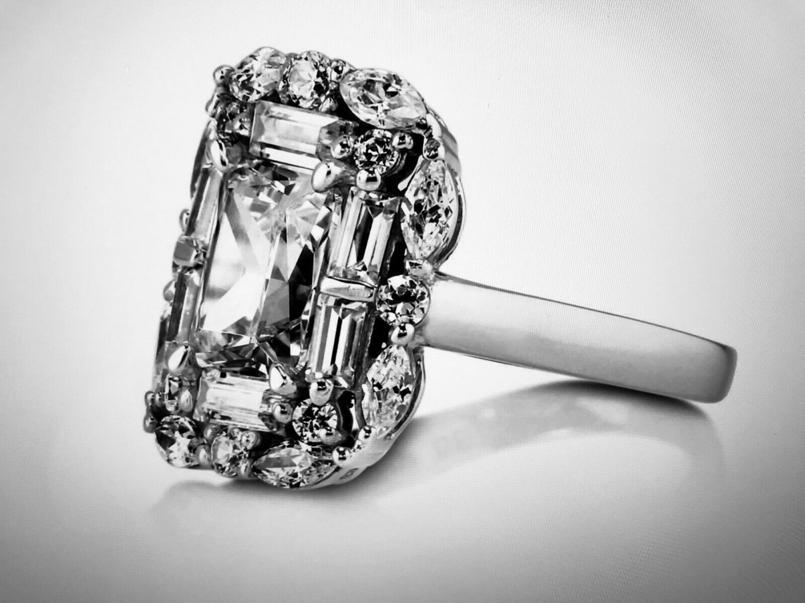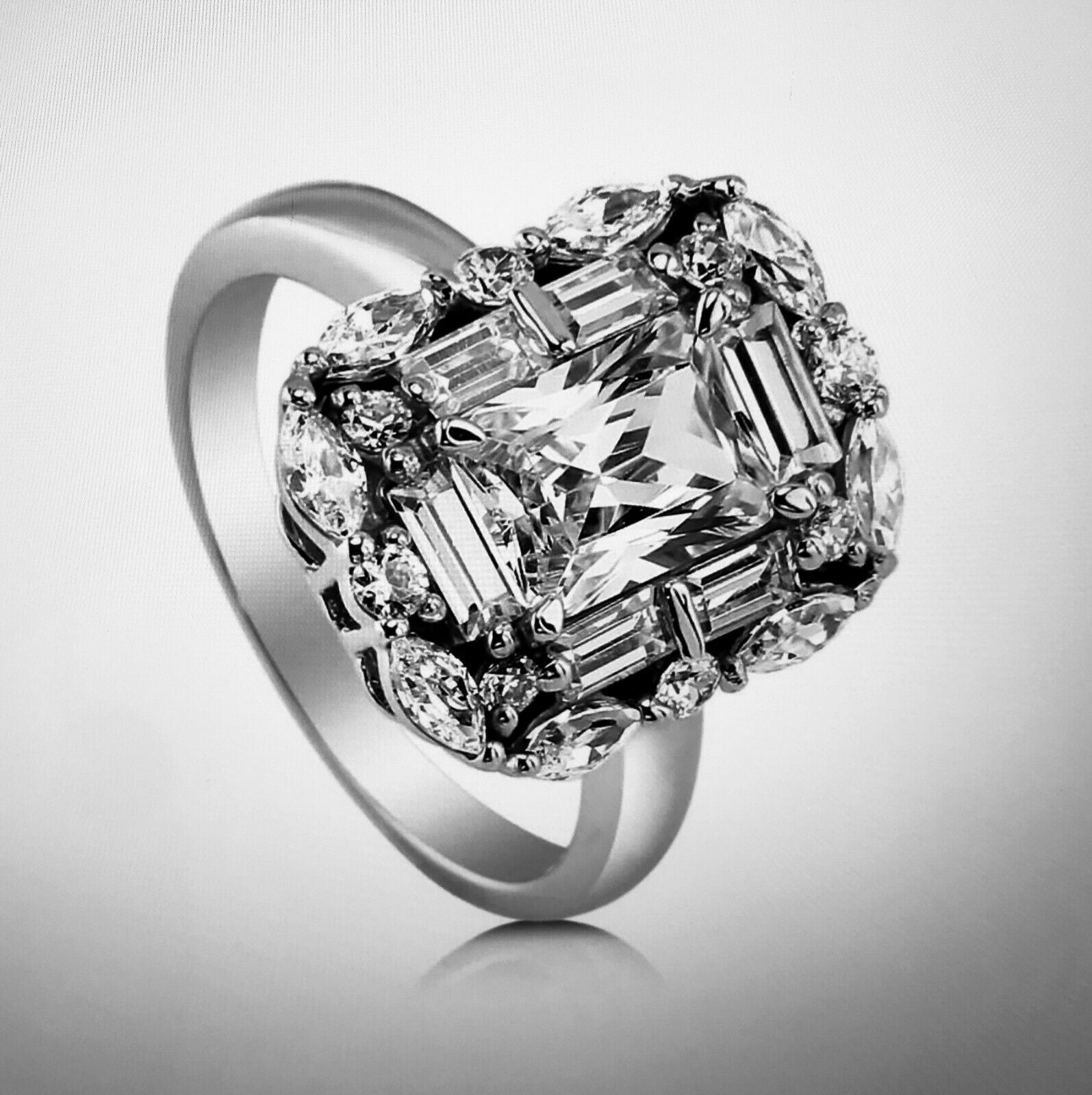 4Ct Radiant Cut Diamond Classy Art Deco Engagement Ring 14K White Gold Finish