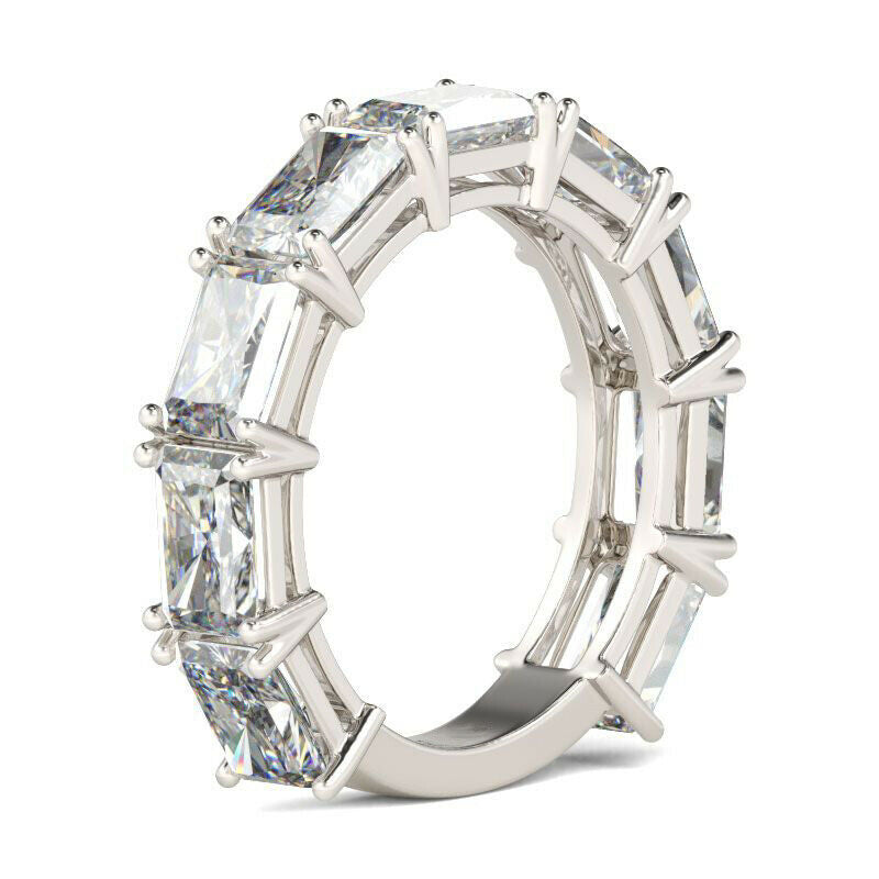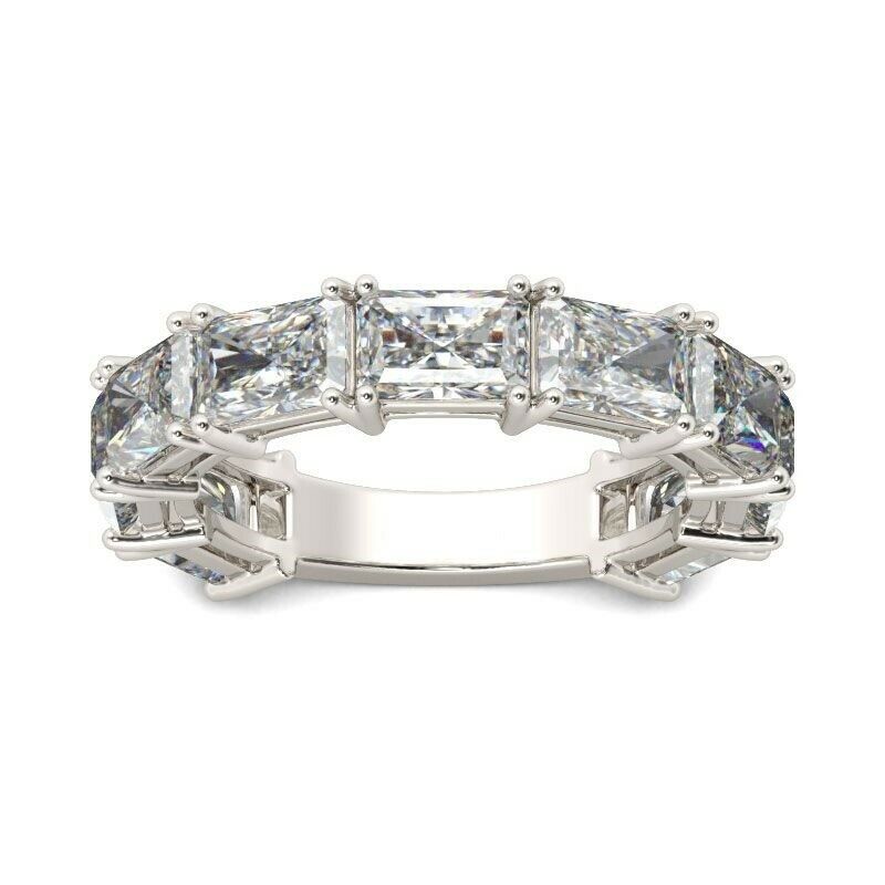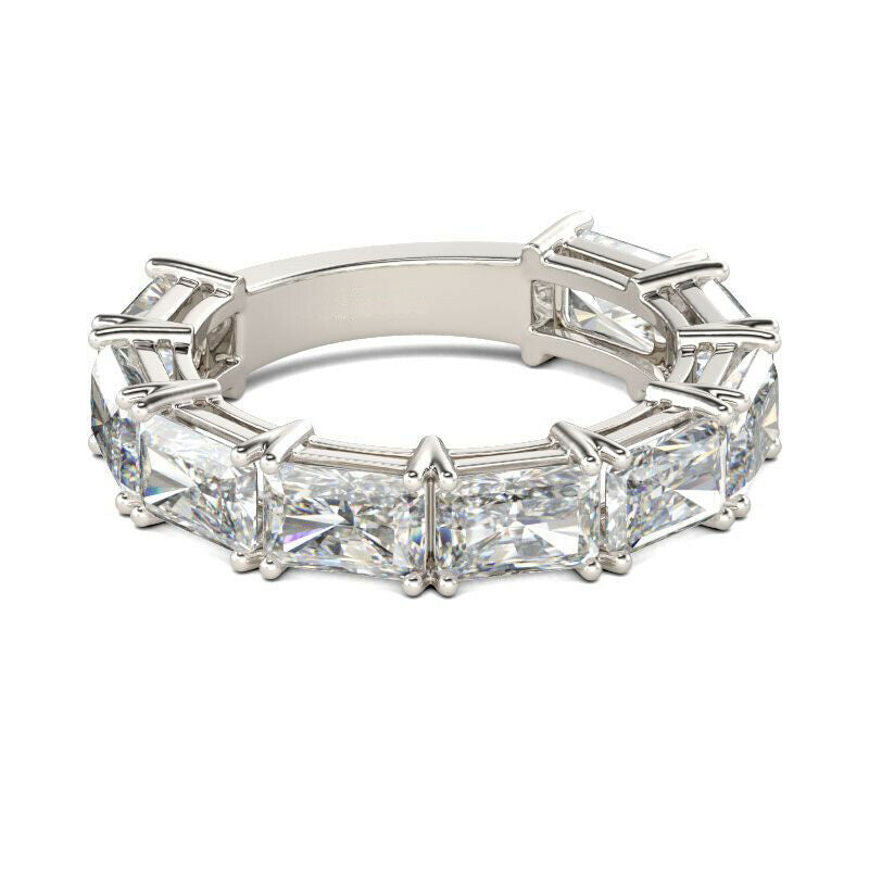 4Ct Radiant Cut Diamond East West Iced Wedding Band Ring 14K White Gold Finish