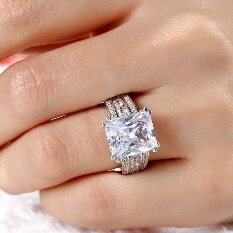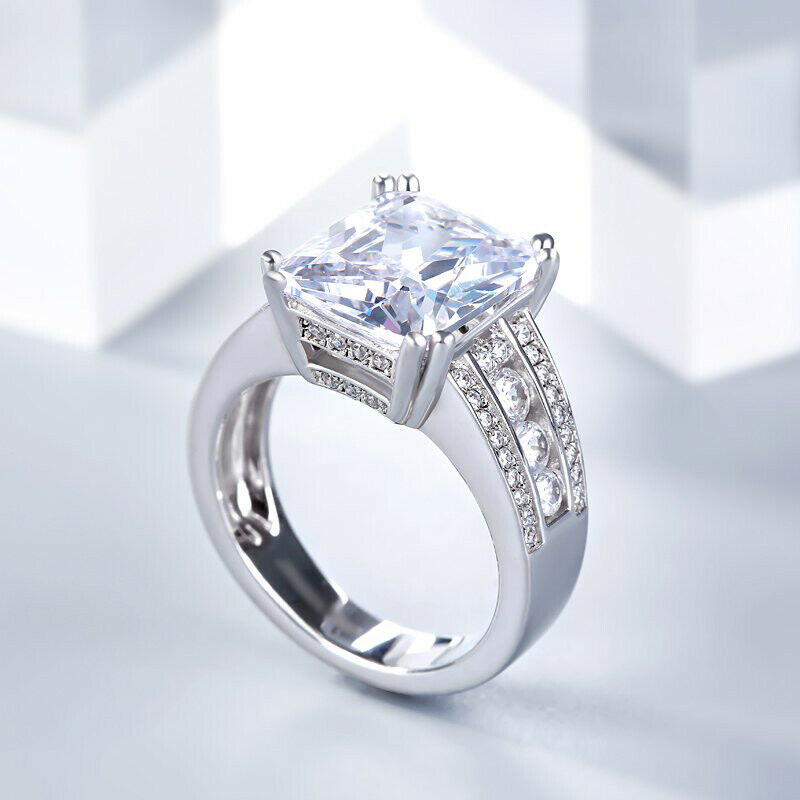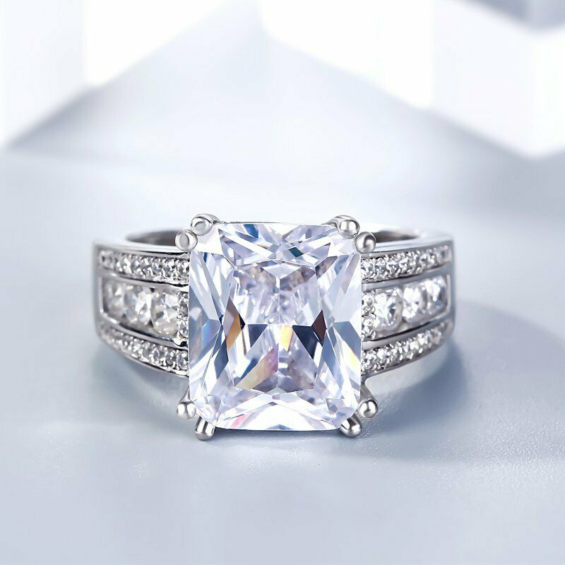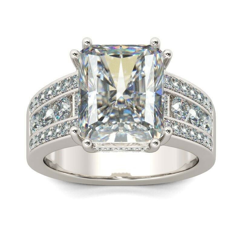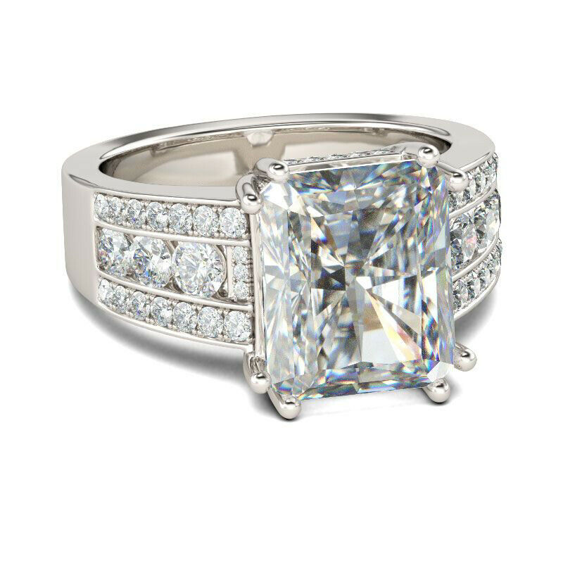 4Ct Radiant Cut Diamond Engagement Ring 14K White Gold Finish Round Iced Accent