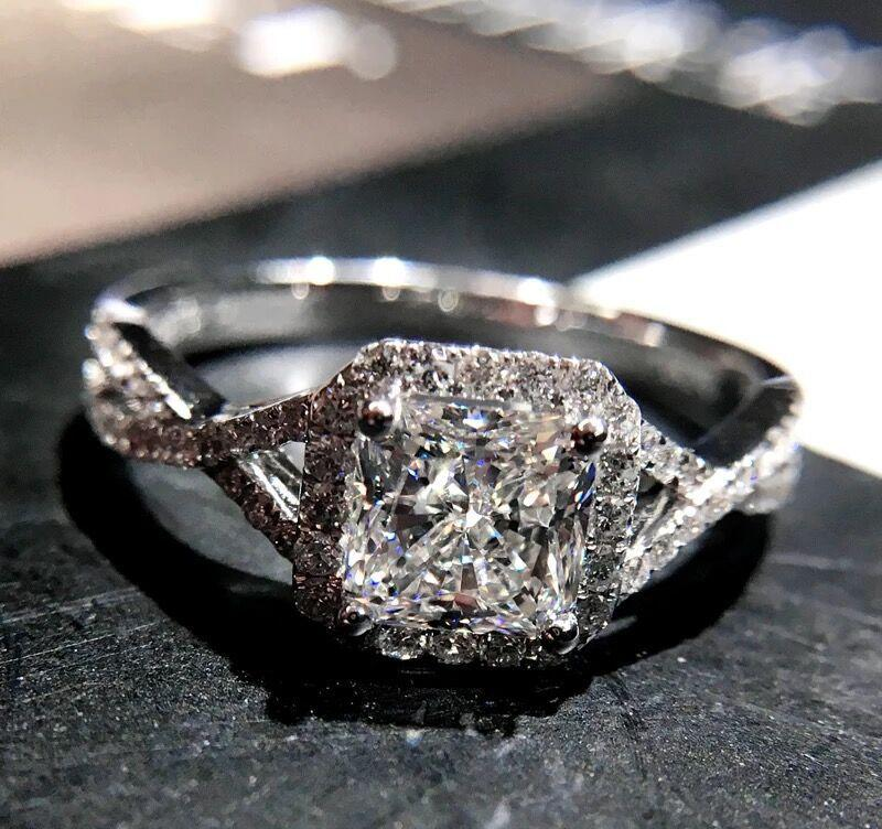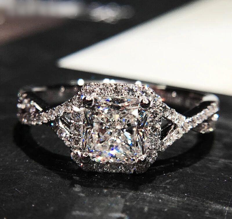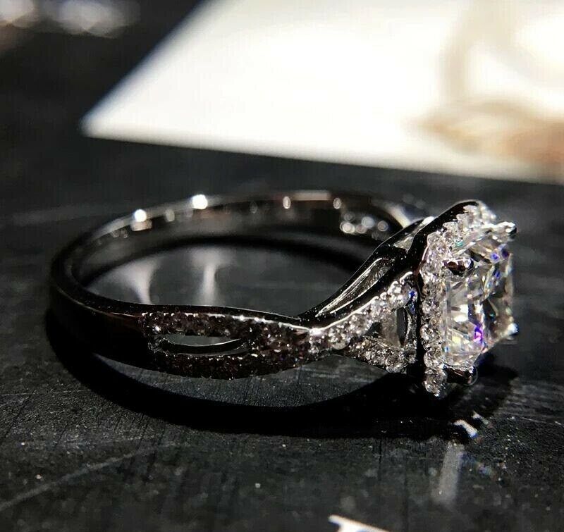 4Ct Radiant Cut Diamond Halo Solitaire Engagement Ring 18K White Gold Finish