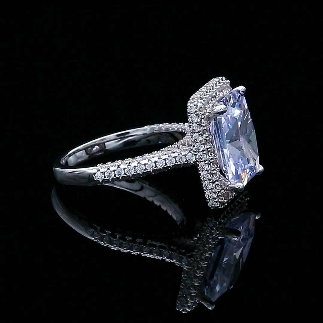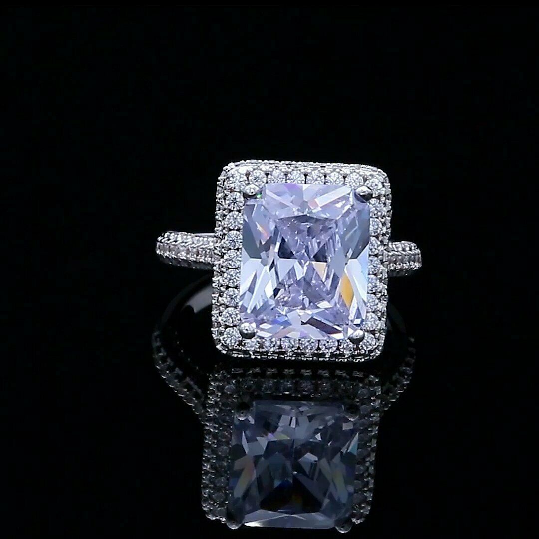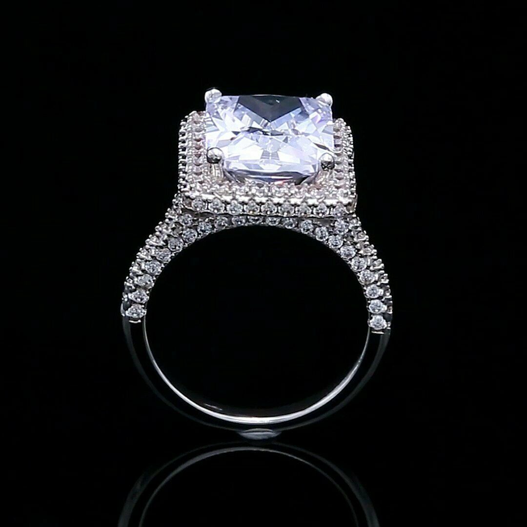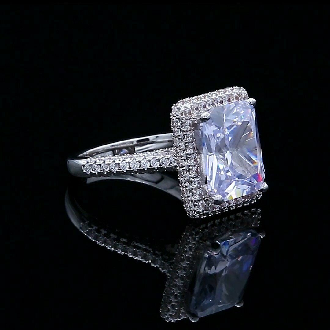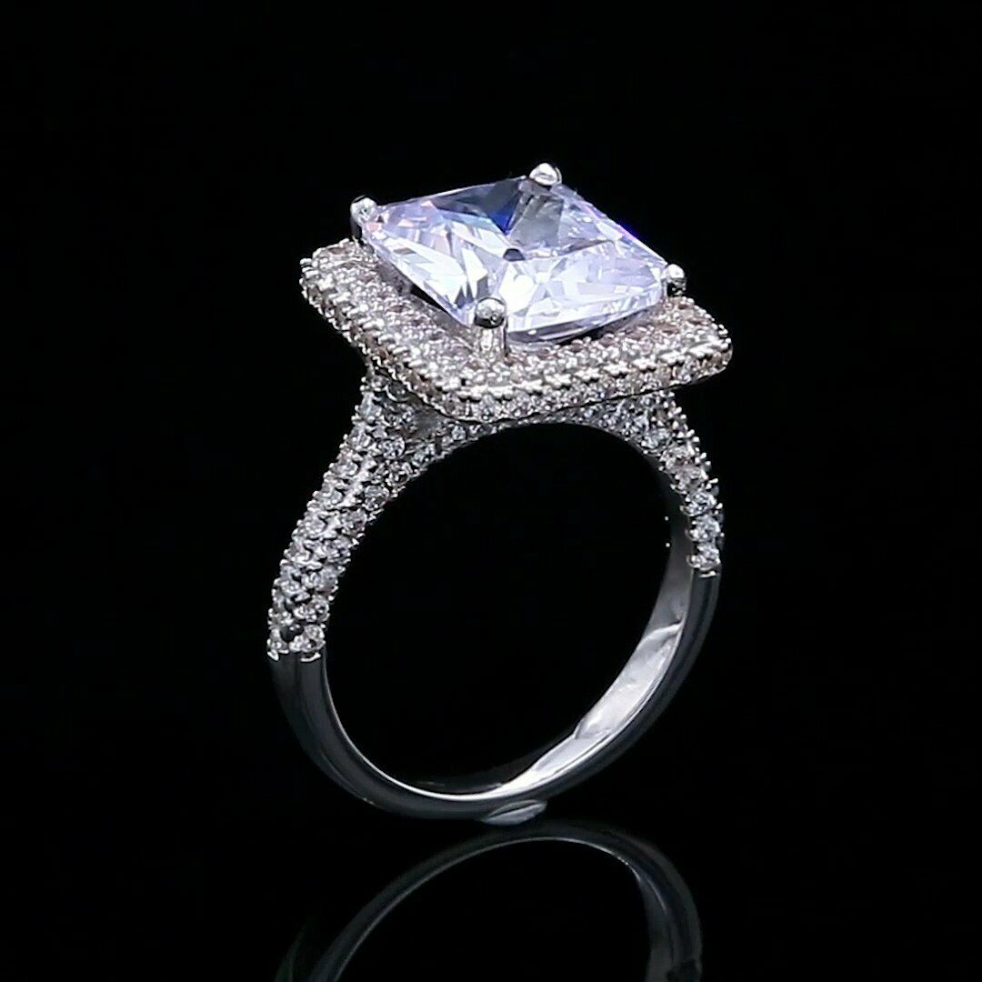 4Ct Radiant Cut Diamond Halo Solitaire with Accents Ring 14K White Gold Finish