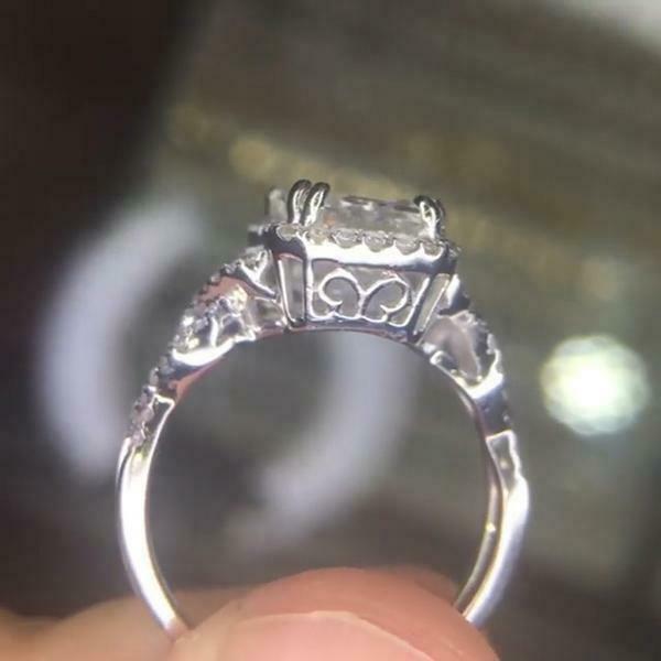 4Ct Radiant Cut Diamond Infinity Band Vintage Solitaire Ring 14K White Gold Over