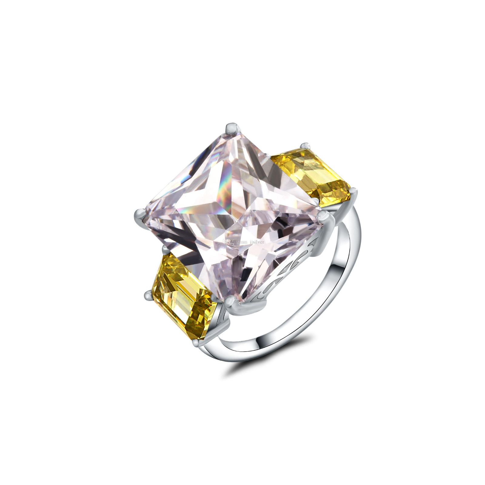 4Ct Radiant Cut Diamond Yellow Sapphire Gatsby Trilogy Ring 14K White Gold Over