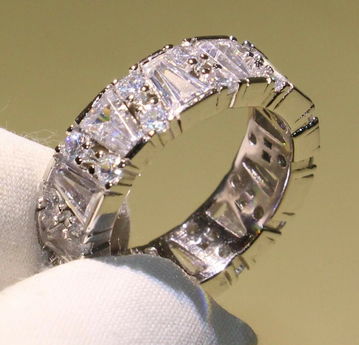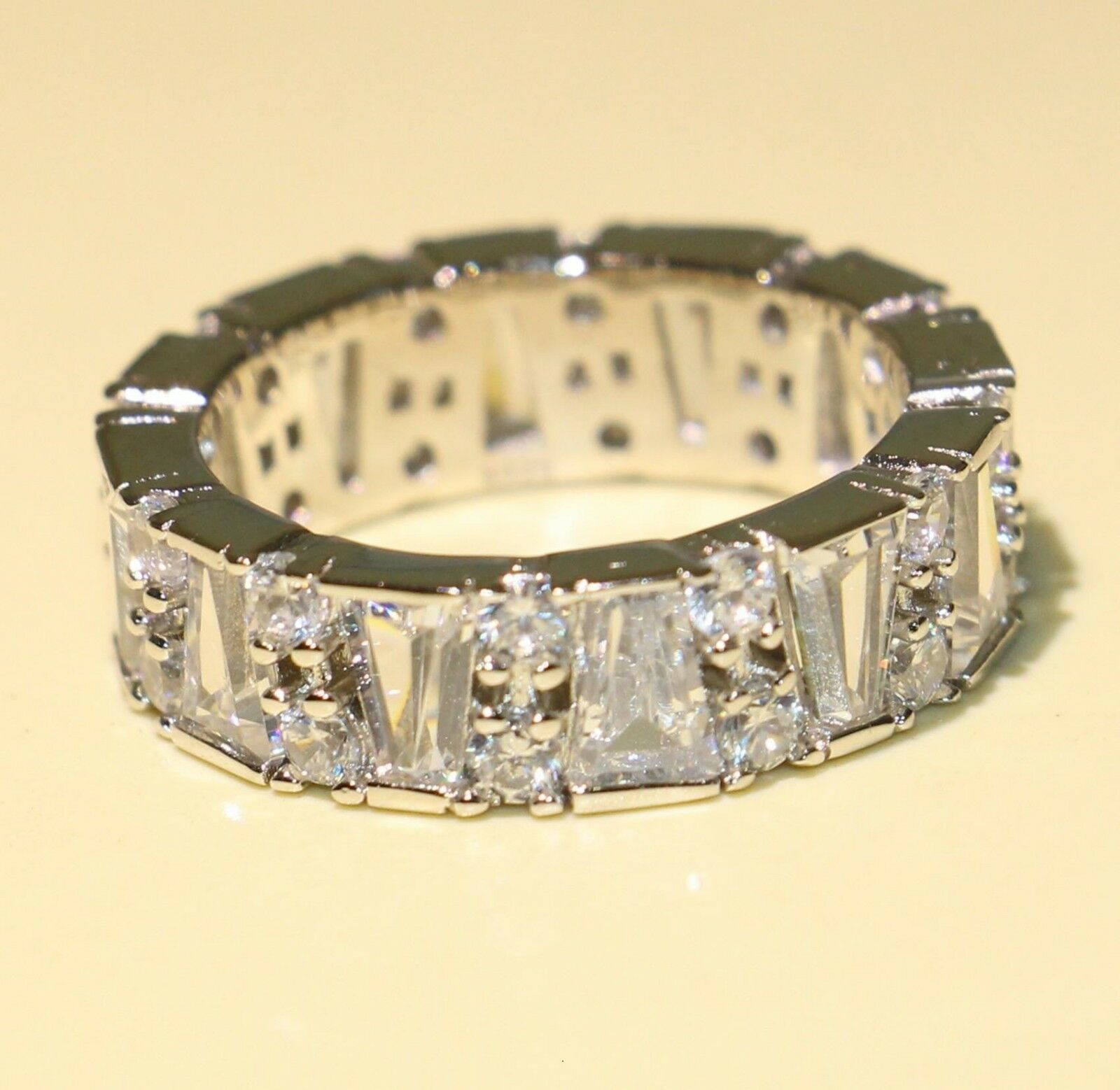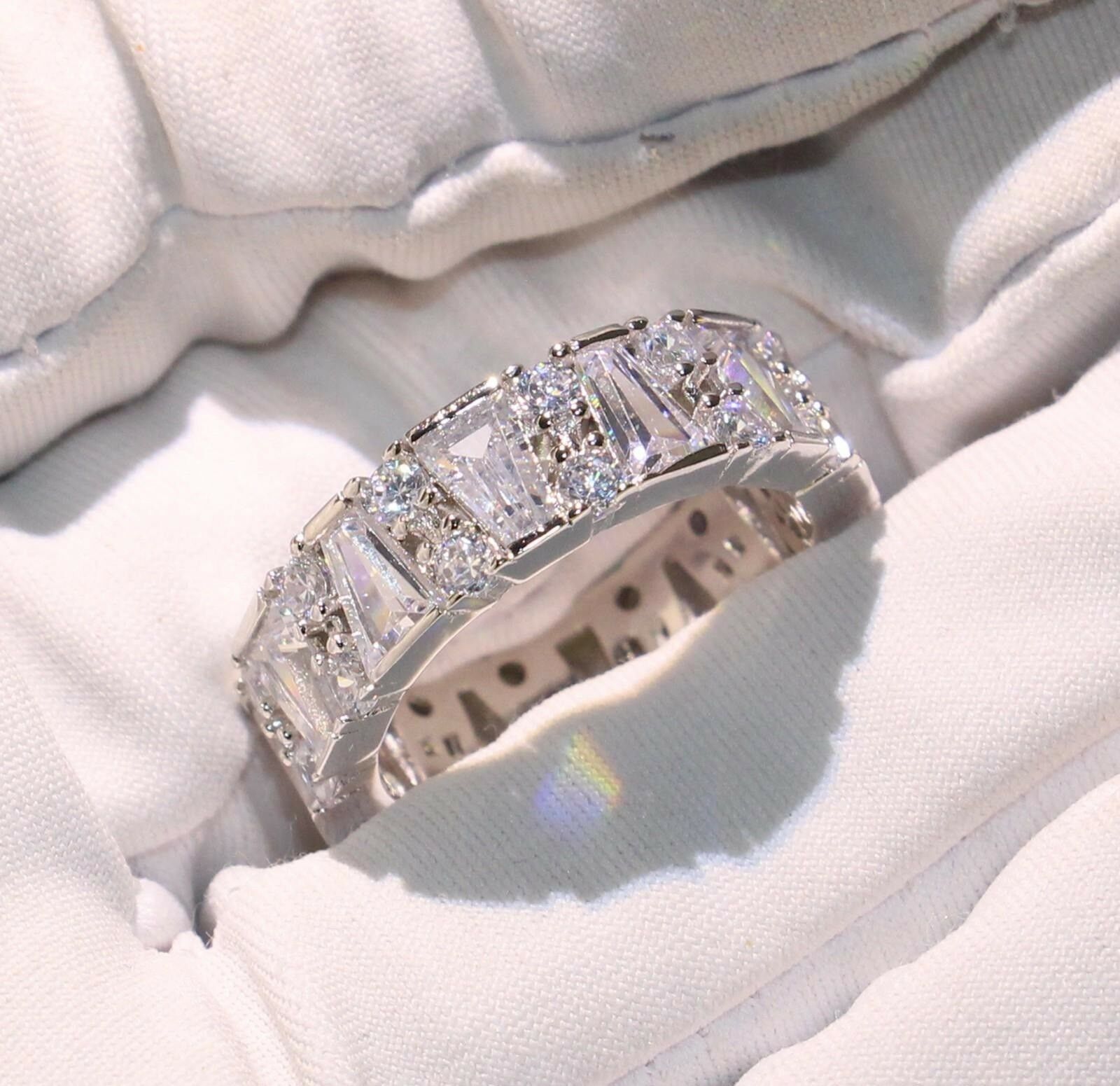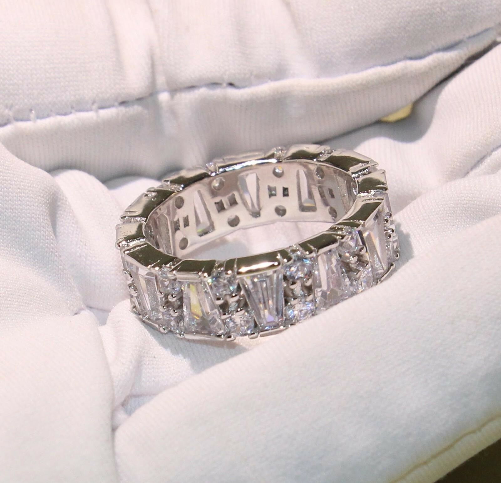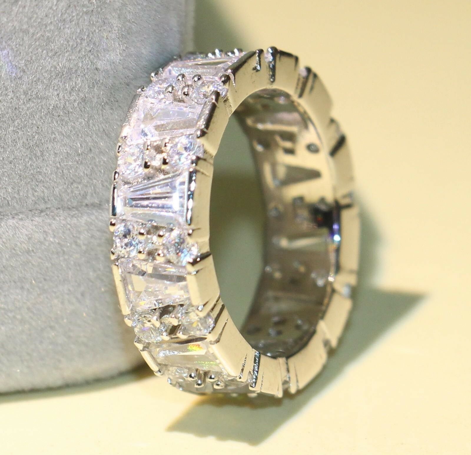 4ct Round & Baguette Cut Diamond Wedding Ring Band 14k WhiteGold Finish Eternity