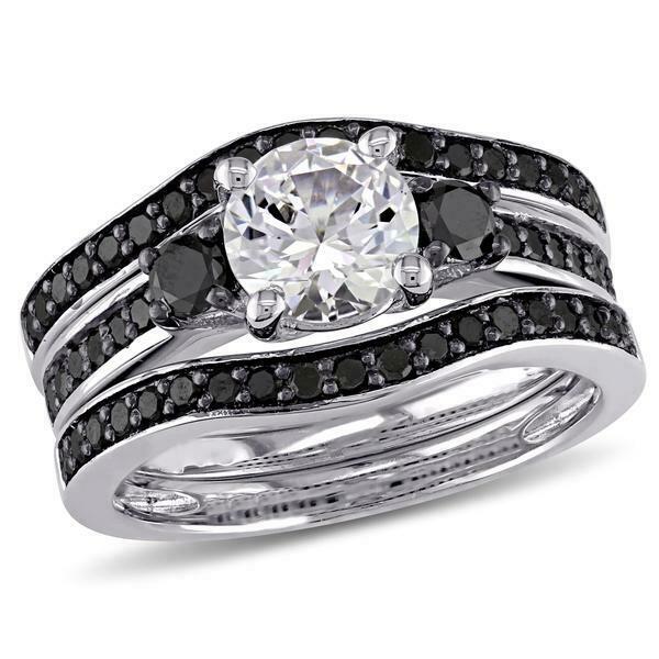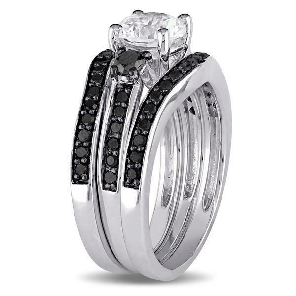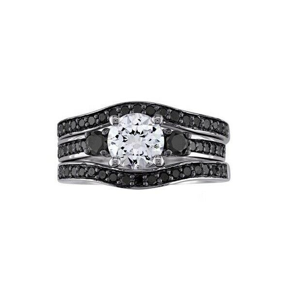 4Ct Round Cut Black Diamond Bridal Trio Set Engagement Ring 14K White Gold Over