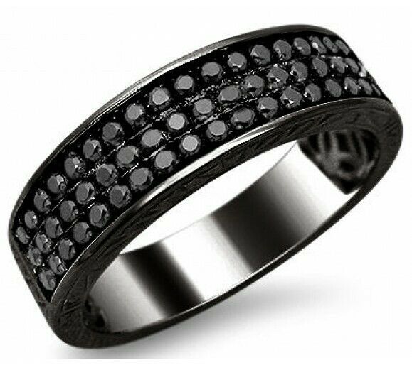 4Ct Round Cut Black Diamond Half Eternity Wedding Band 14K Black Gold Finish