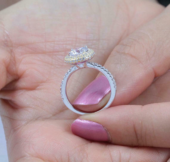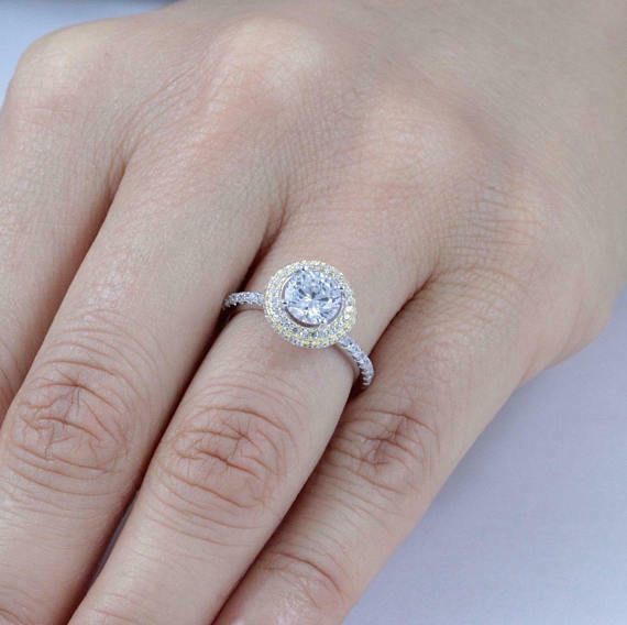 4Ct Round Cut Diamond Accent Double Halo Engagement Ring 14K Dual Gold Finish