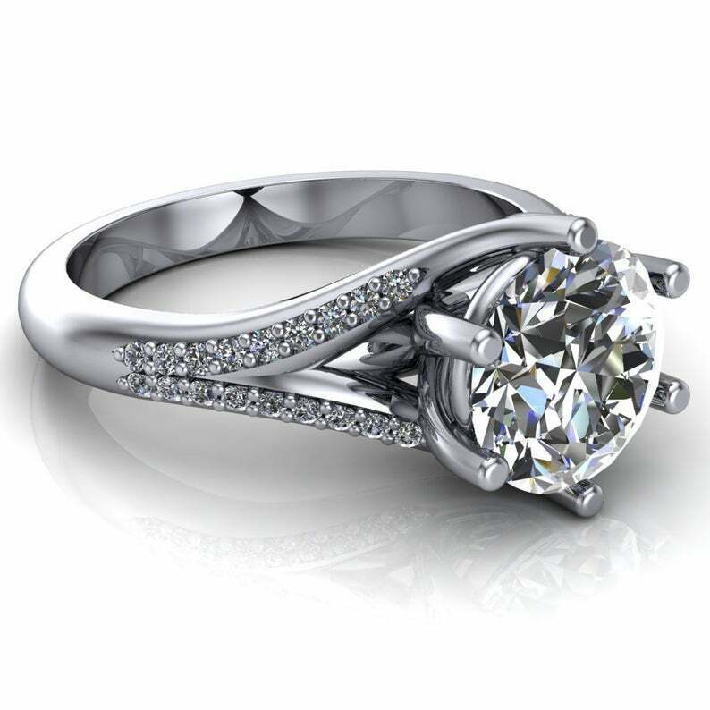 4ct Round Cut Diamond Accents Split Shank Engagement Ring 14k White Gold Finish