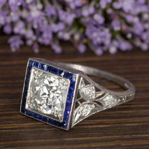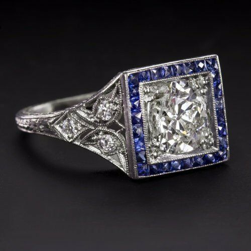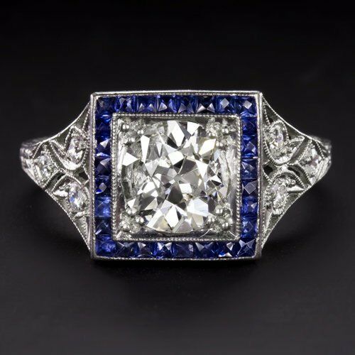 4Ct Round Cut Diamond Art Deco Sapphire Halo Engagement Ring 14K White Gold Over