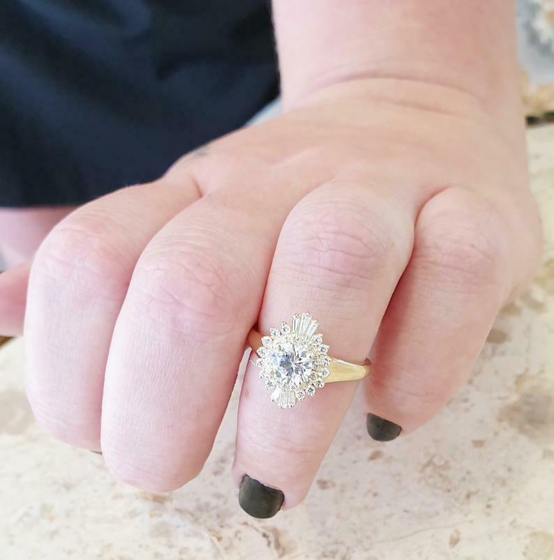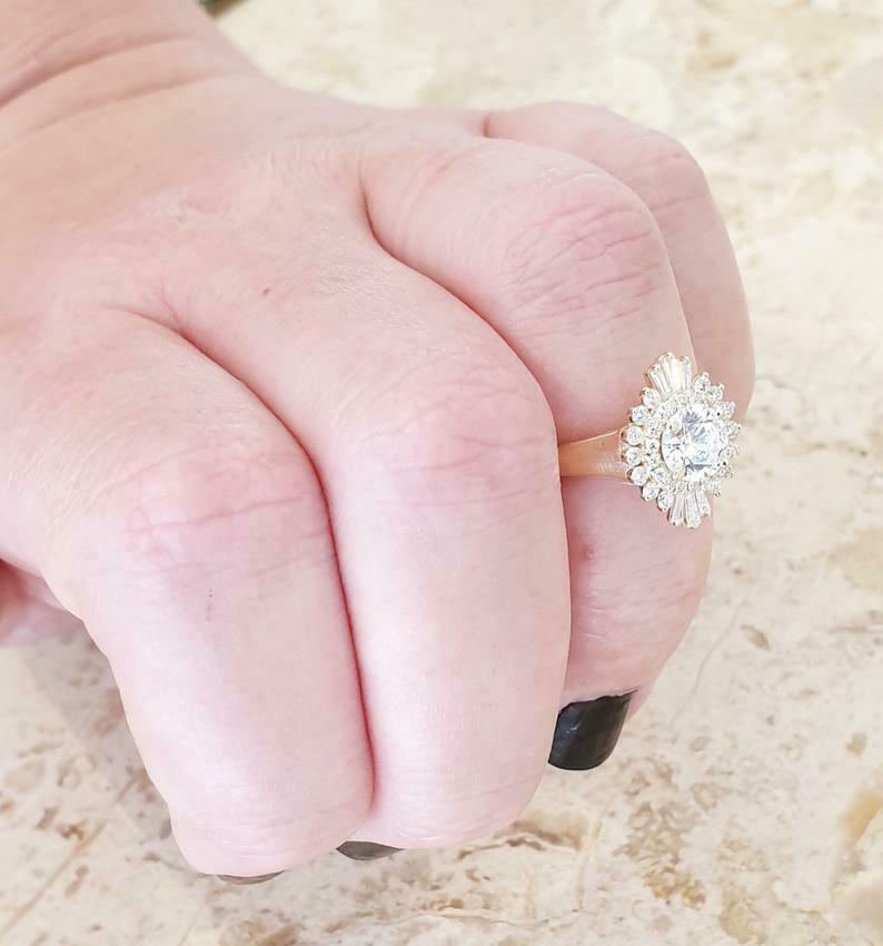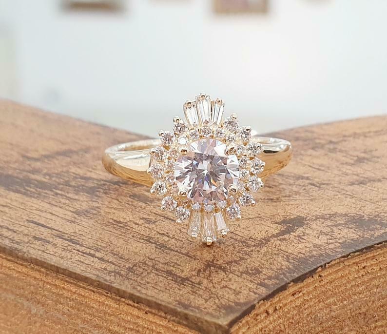 4ct Round Cut Diamond Ballerina Halo Engagement Ring Women 14k YellowGold Finish