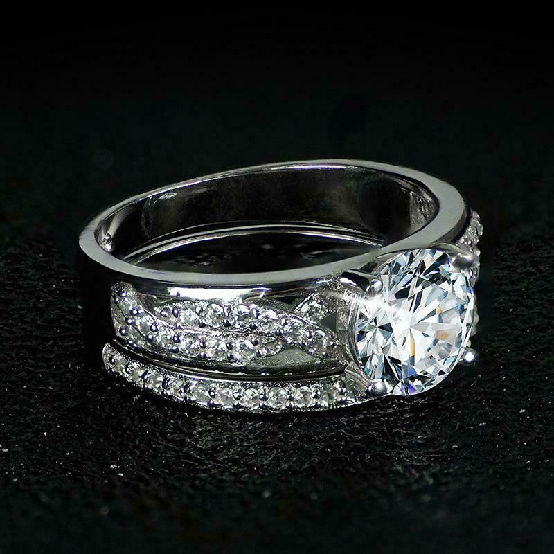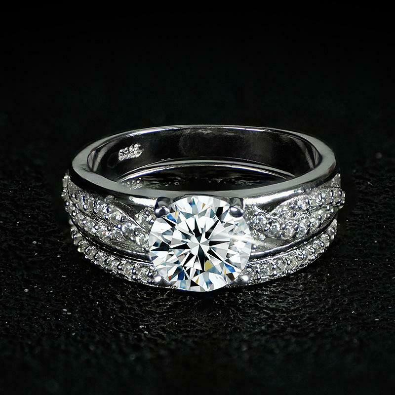 4Ct Round Cut Diamond Bridal Set Solitaire Split Band Ring 14K White Gold Finish