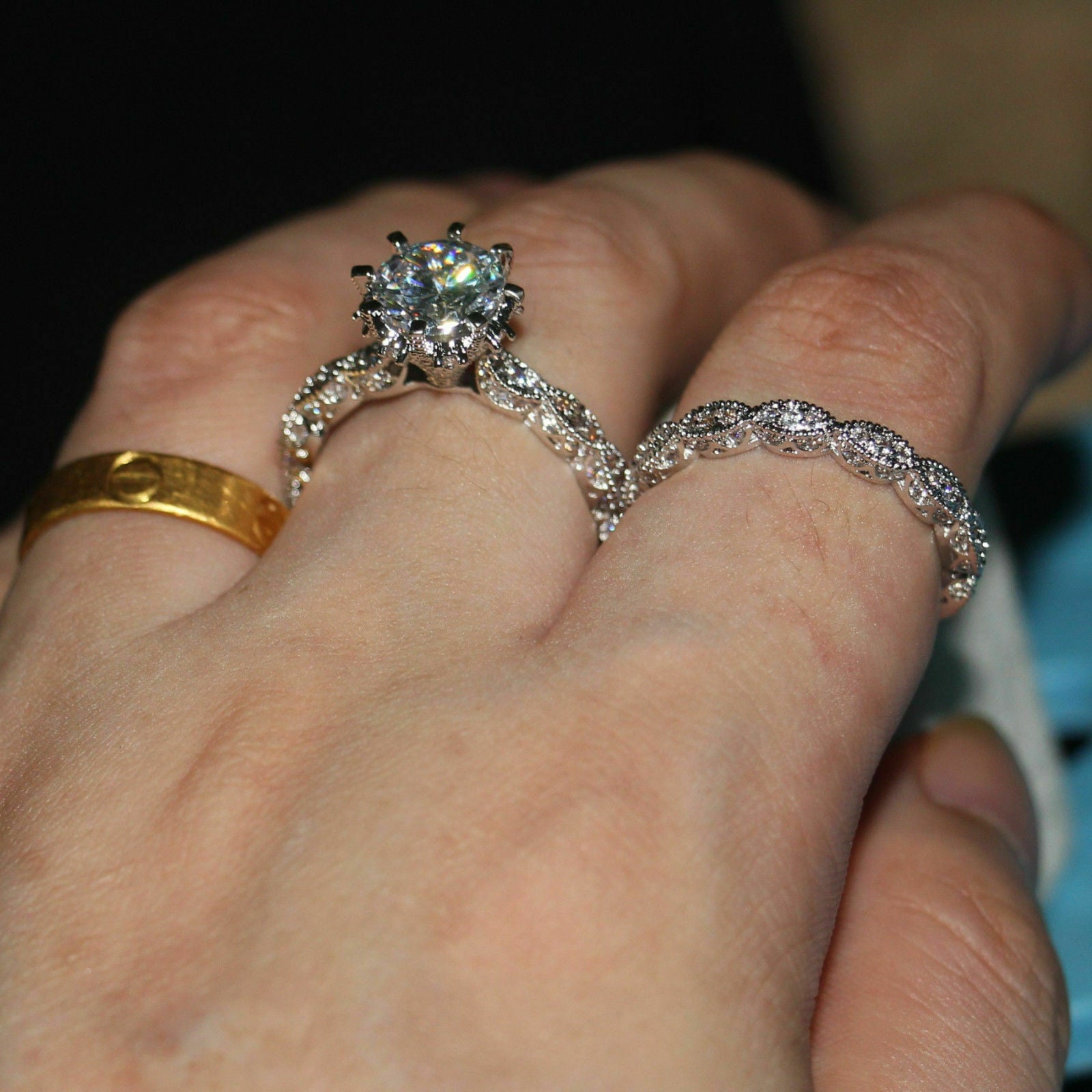 4Ct Round Cut Diamond Bridal Set Vintage Solitaire Ring Band 14K White Gold Over
