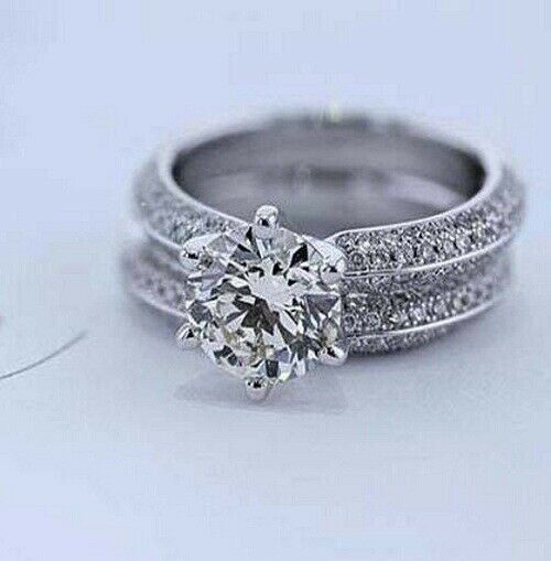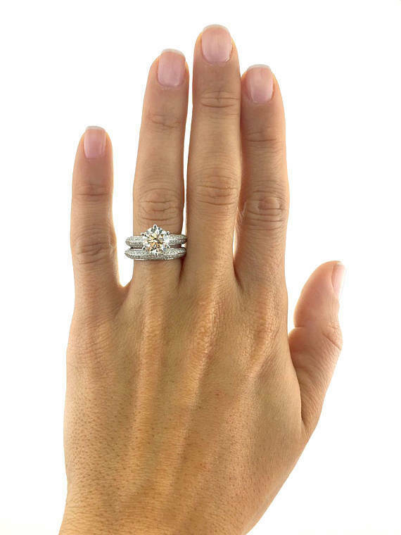 4Ct Round Cut Diamond Bridal Set Wide Solitaire Ring Band 14K White Gold Finish