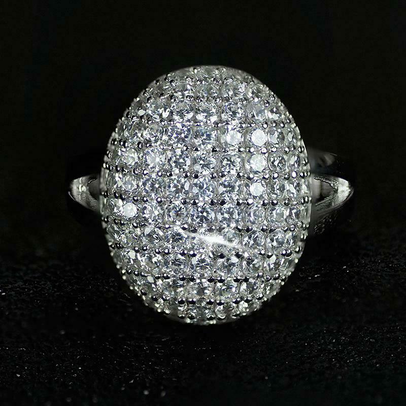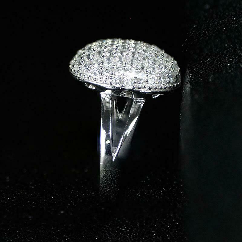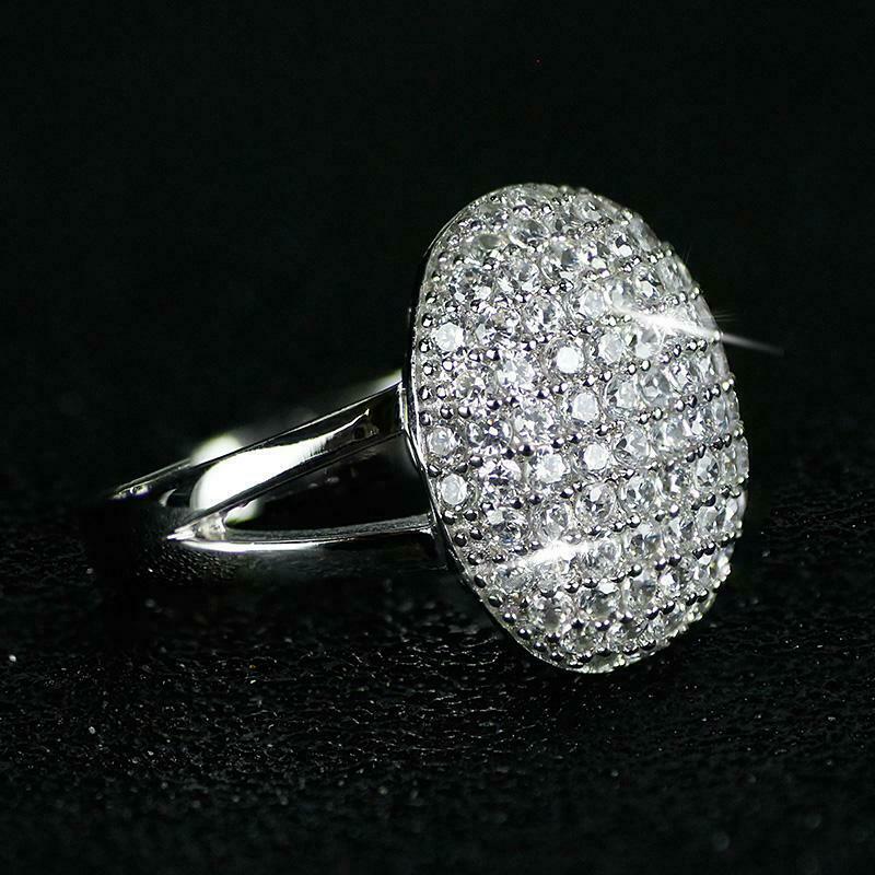 4Ct Round Cut Diamond Dome Cluster Halo Pave Engagement Ring 14K White Gold Over