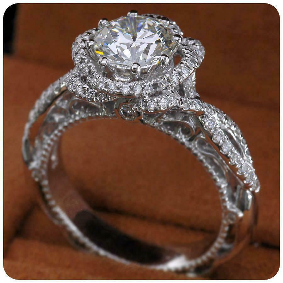 4Ct Round Cut Diamond Elegant Vintage Solitaire Queen Ring 14K White Gold Finish