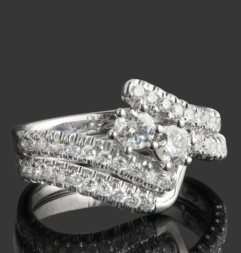 4ct Round Cut Diamond Engagement Ring Two Stone Bridal Set 14k White Gold Finish