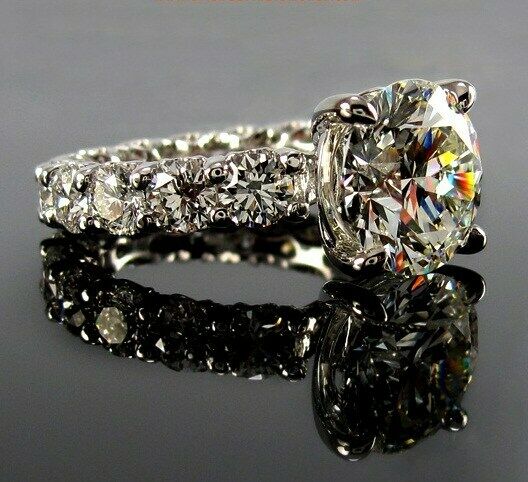 4Ct Round Cut Diamond Eternity Solitaire Engagement Ring 14K White Gold Finish