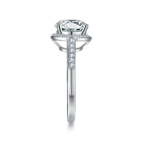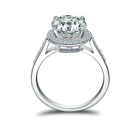 4Ct Round Cut Diamond Halo Engagement Ring 14K White Gold Finish with Accents