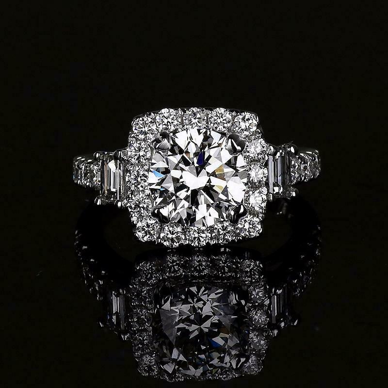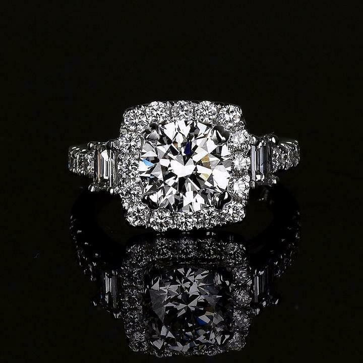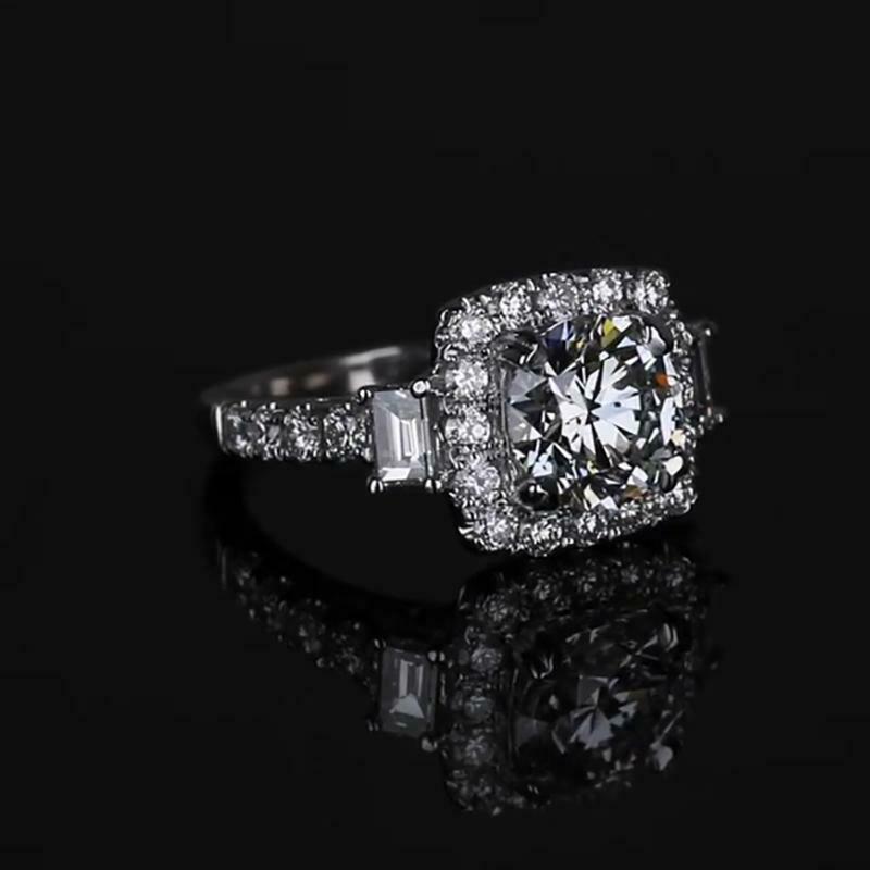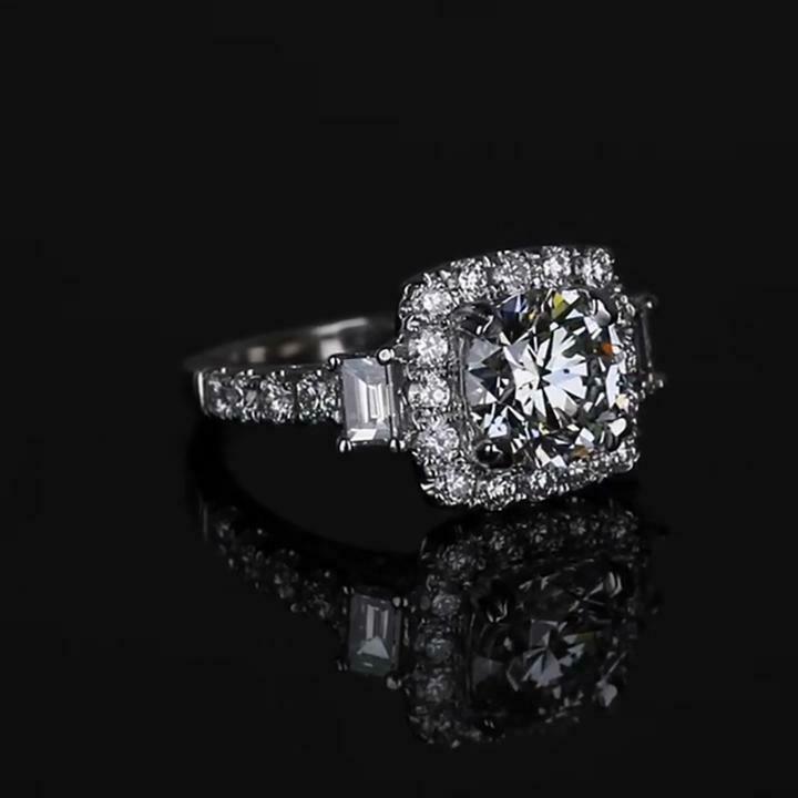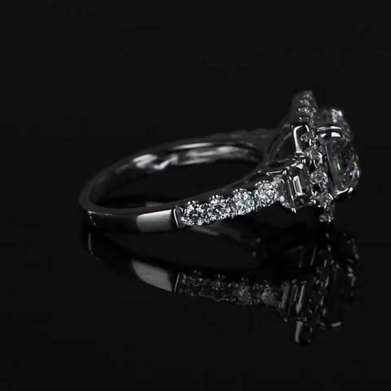 4Ct Round Cut Diamond Halo Iced Exquisite Engagement Ring 14K White Gold Finish