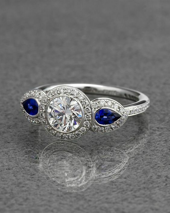 4Ct Round Cut Diamond Halo Sapphire Accent Engagement Ring 14K White Gold Finish