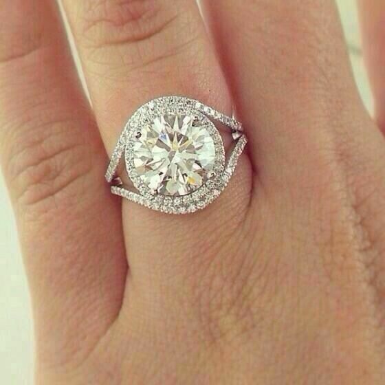 4Ct Round Cut Diamond Halo Split Band Engagement Ring 14K White Gold Finish