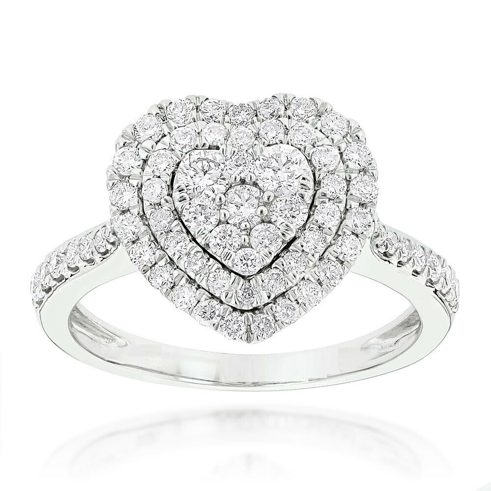 4Ct Round Cut Diamond Heart Shape Dual Halo Engagement Ring 14K White Gold Over