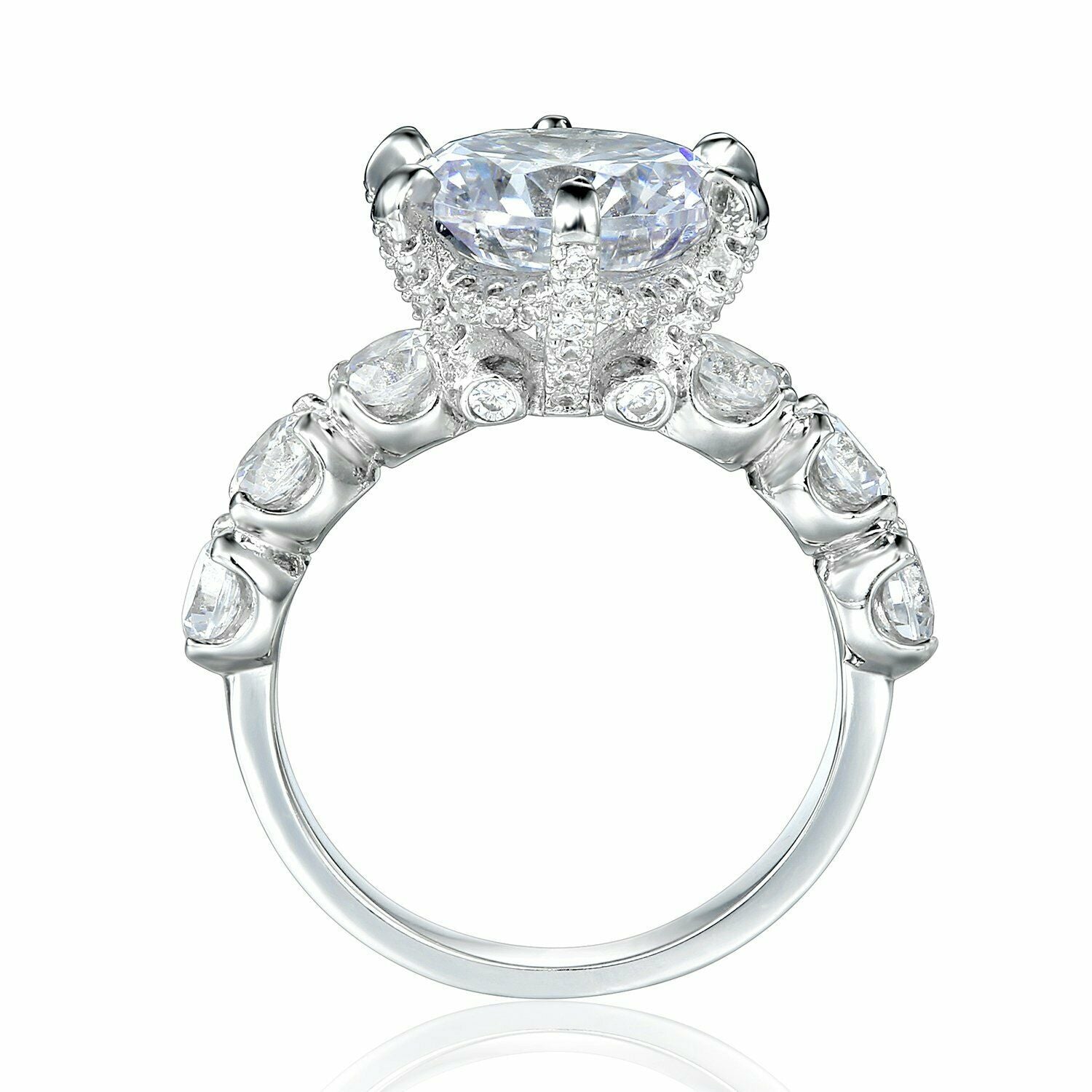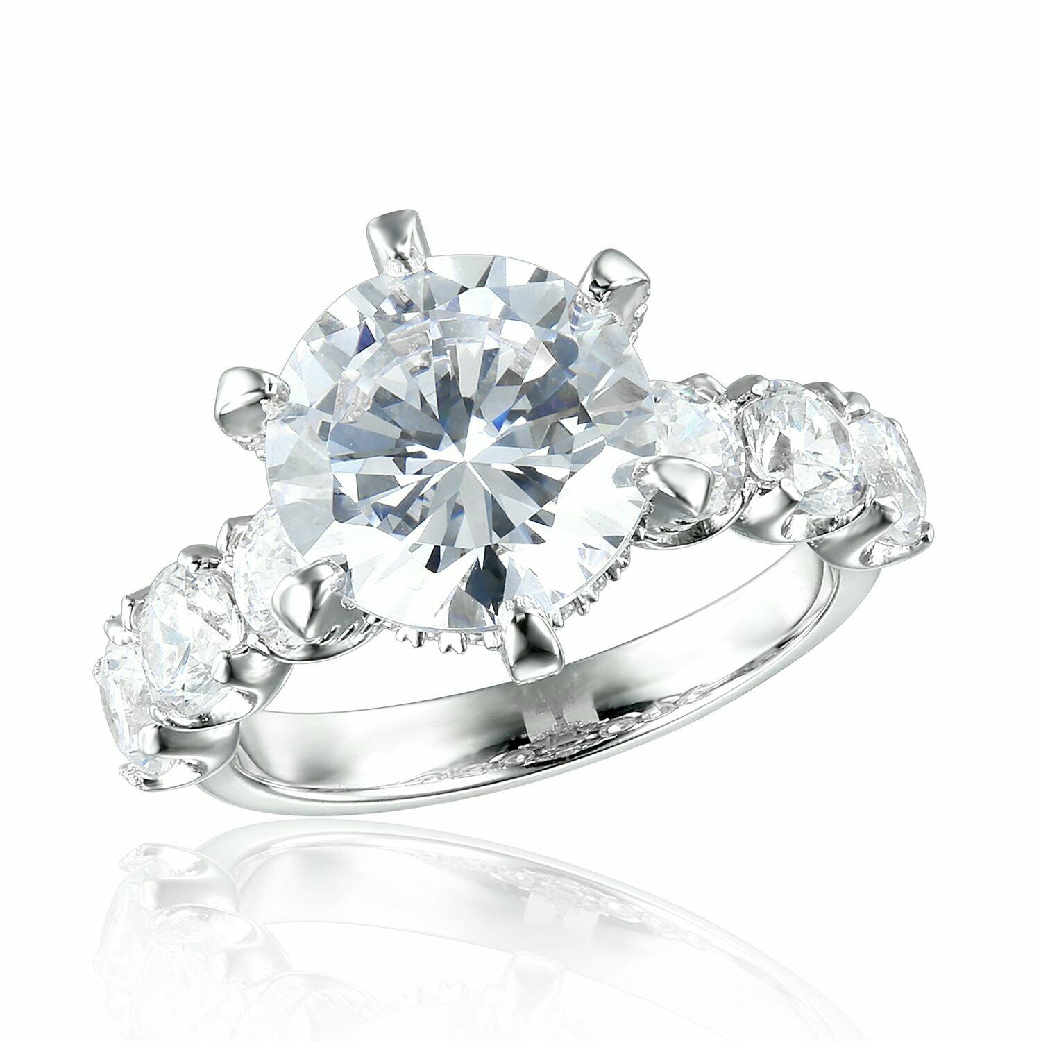 4Ct Round Cut Diamond Ice Solitaire Accent Engagement Ring 14K White Gold Finish