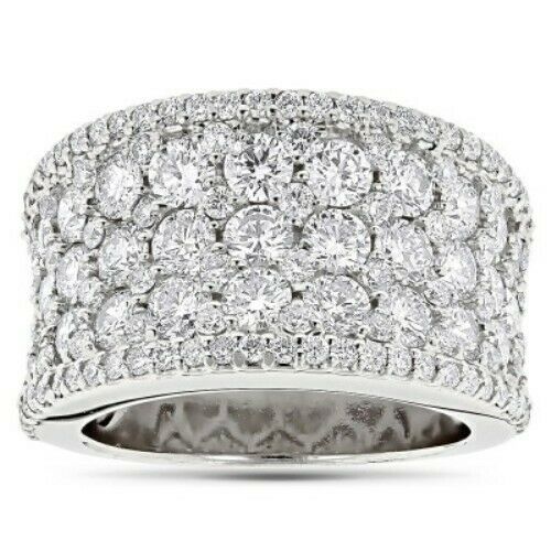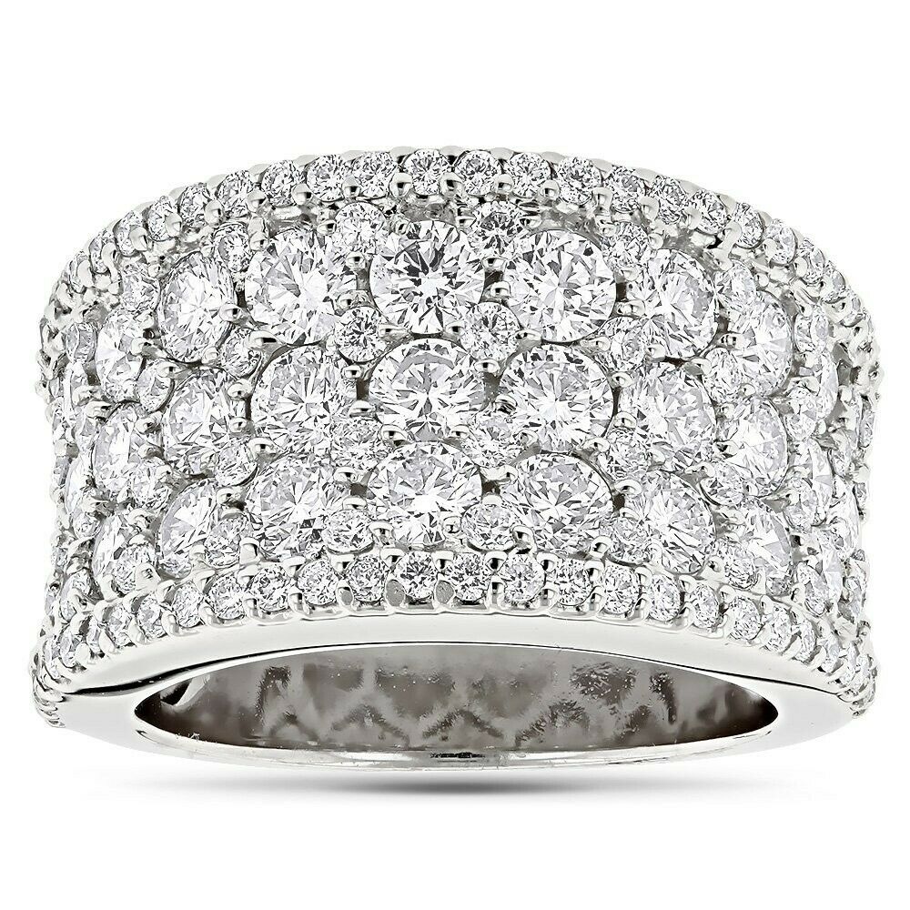 4Ct Round Cut Diamond Iced Cluster Engagement Ring Band 14K White Gold Finish