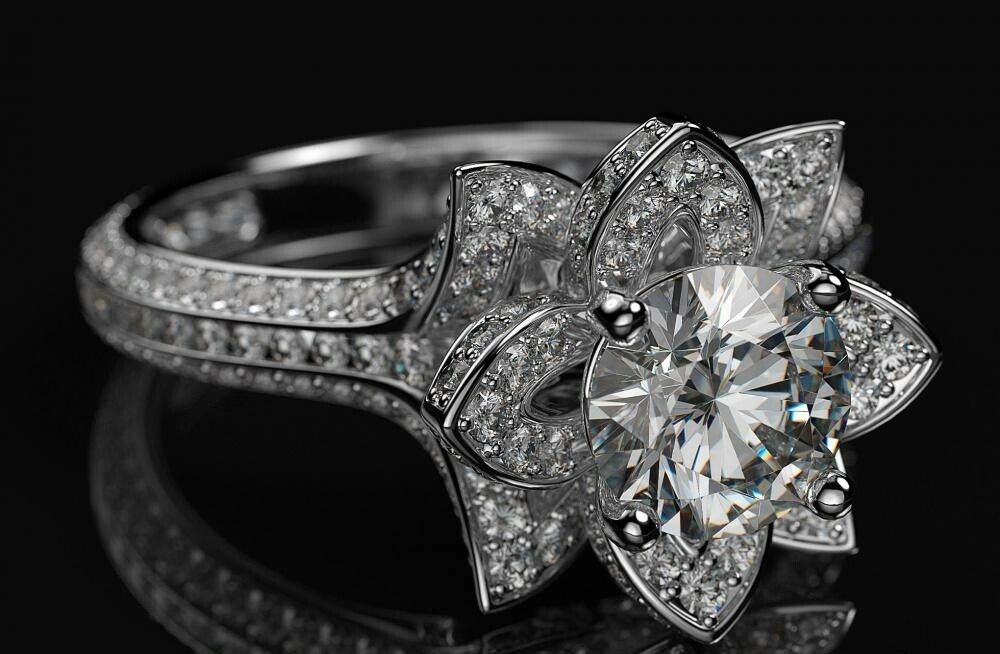 4Ct Round Cut Diamond Lotus Flower Solitaire Engagement Ring 14K White Gold Over