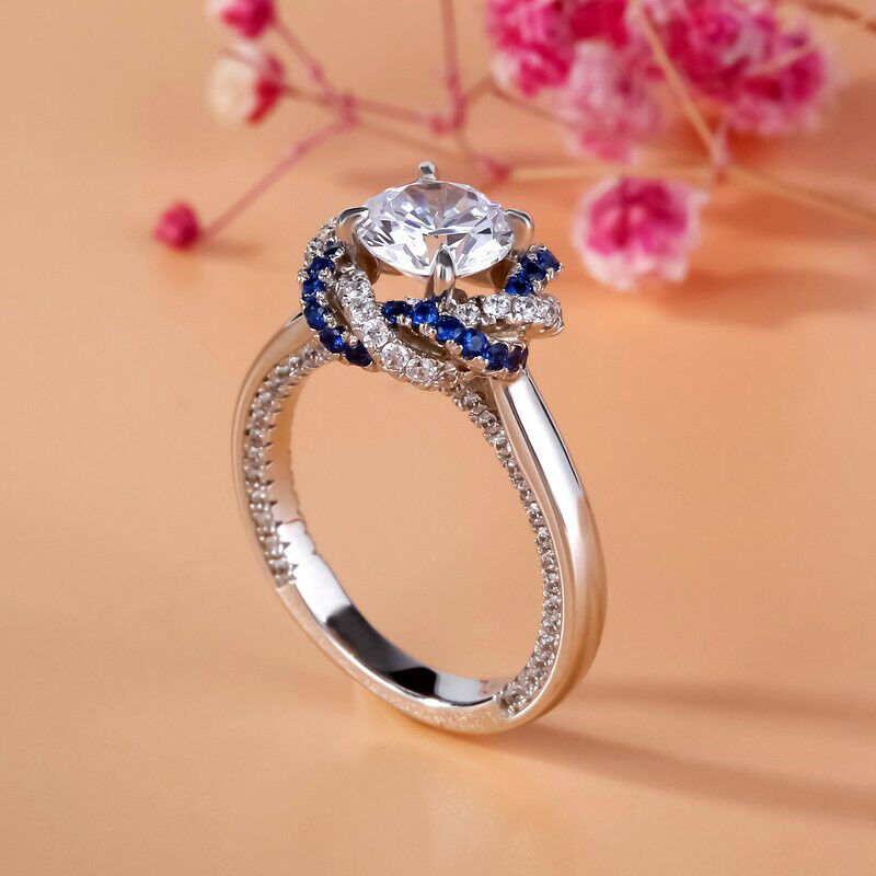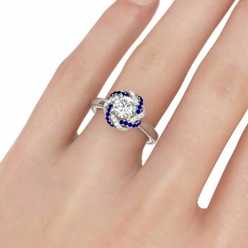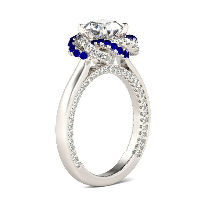 4Ct Round Cut Diamond Sapphire Floral Halo Engagement Ring 14K White Gold Finish