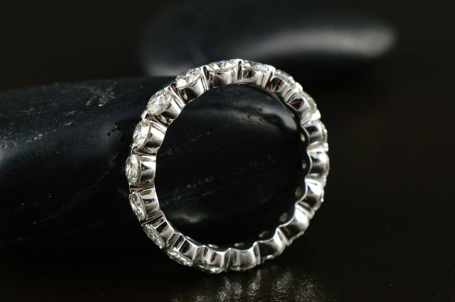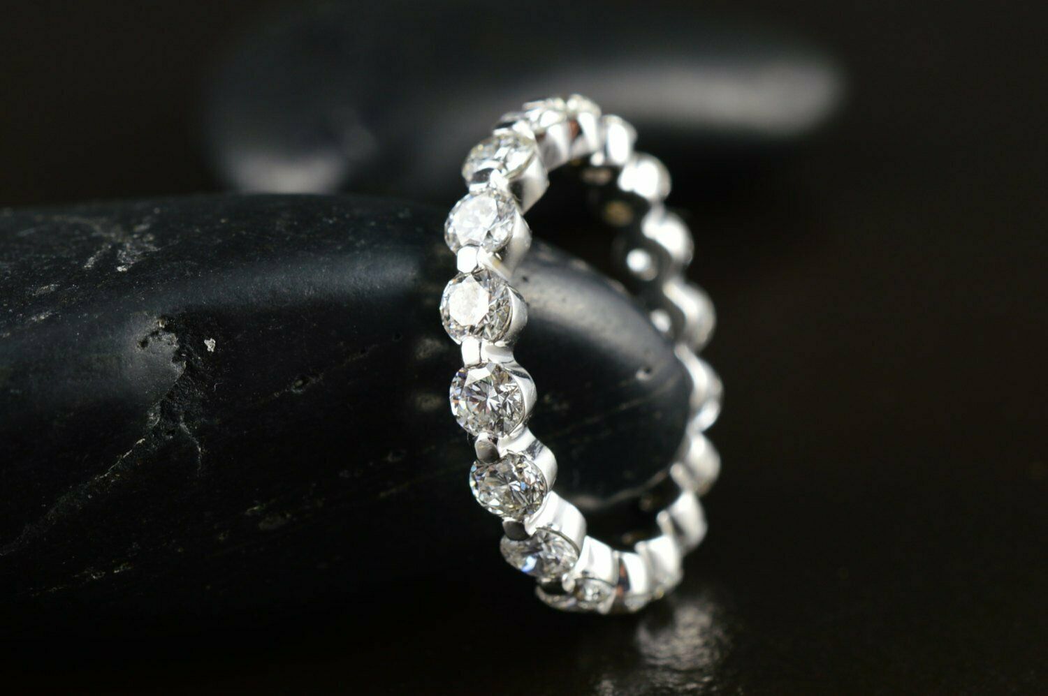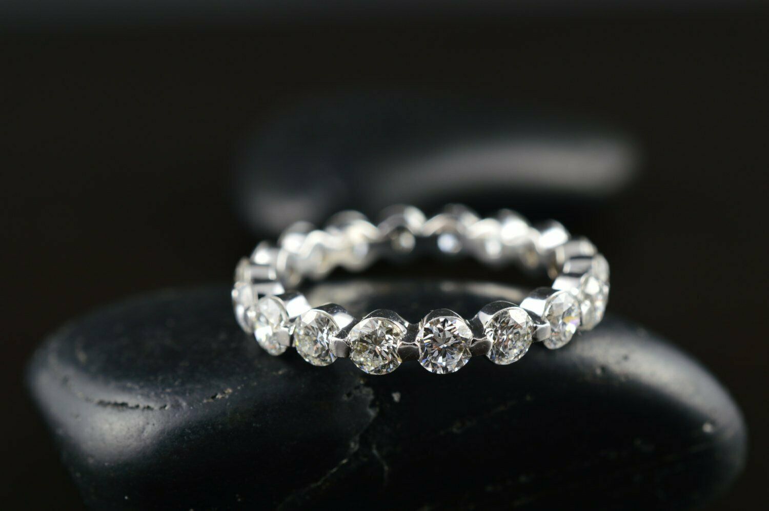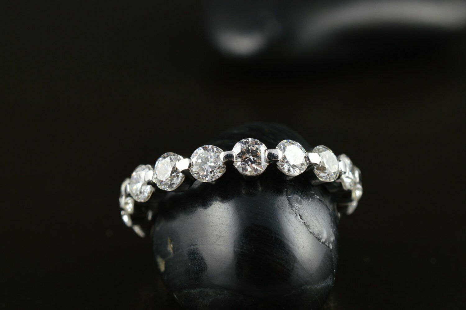 4Ct Round Cut Diamond Single Prong Stackable Wedding Band 14K White Gold Finish