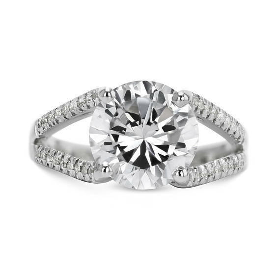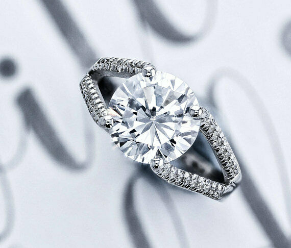 4Ct Round Cut Diamond Solitaire Engagement Ring 14K White Gold Over Split Shank