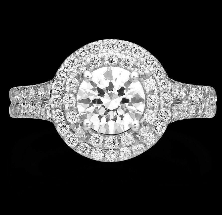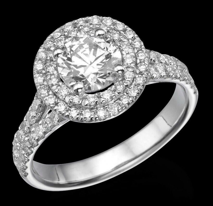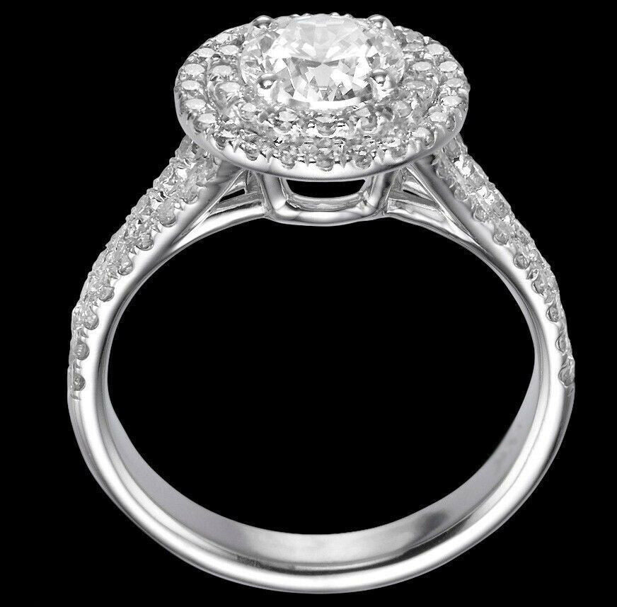4Ct Round Cut Diamond Split Band Double Halo Engagement Ring 18K White Gold Over