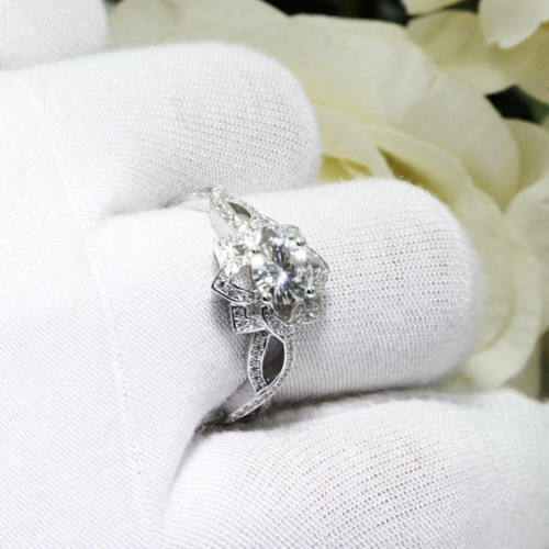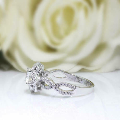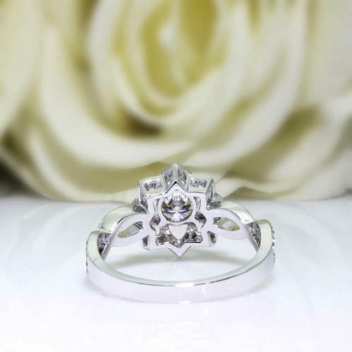 4Ct Round Cut Diamond Split Band Floral Halo Engagement Ring 14K White Gold Over