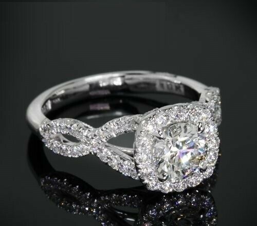 4Ct Round Cut Diamond Split Shank Halo Engagement Ring 14K White Gold Finish