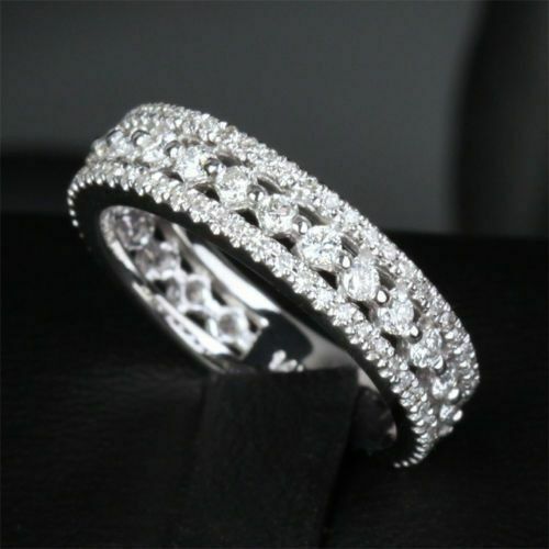 4Ct Round Cut Diamond Three Row Eternity Wedding Band 14K White Gold Finish