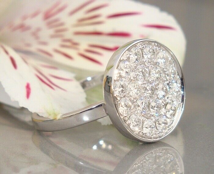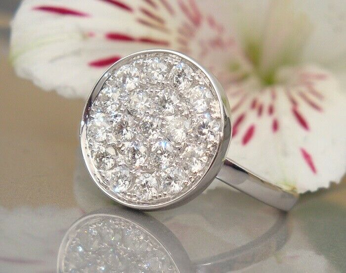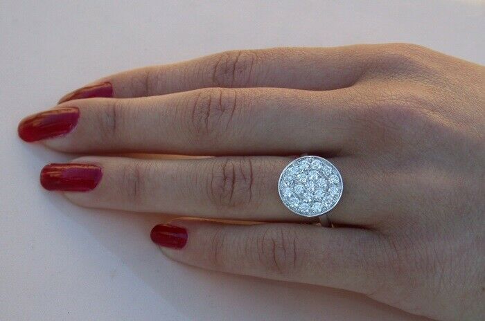 4Ct Round Cut Diamond Unique Cluster Disc Engagement Ring 14K White Gold Finish