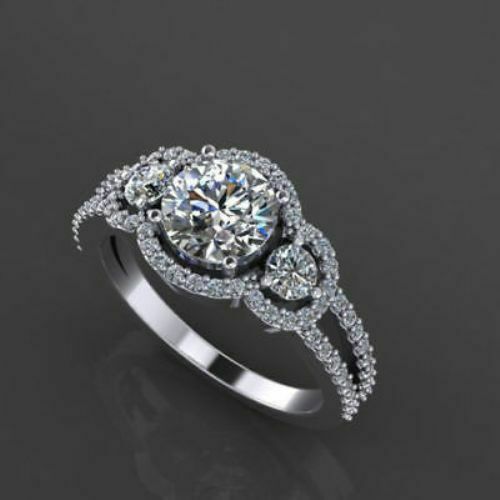 4Ct Round Cut Diamond Unique Trilogy Cluster Engagement Ring 14K White Gold Over