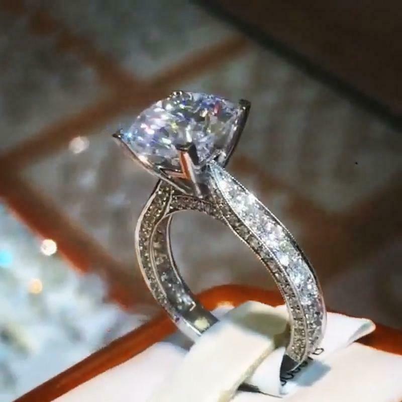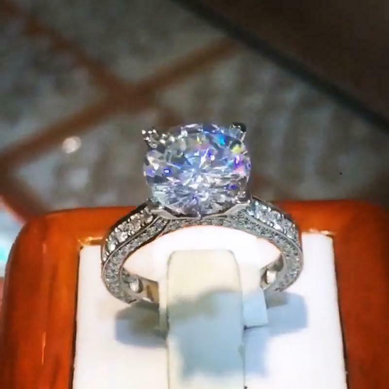 4Ct Round Cut Diamond Vintage Solitaire with Accents Ring 18K White Gold Finish