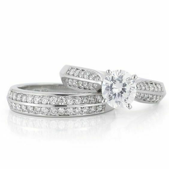 4Ct Round Cut Diamond Wide Shank Bridal Set Solitaire Ring 14K White Gold Finish