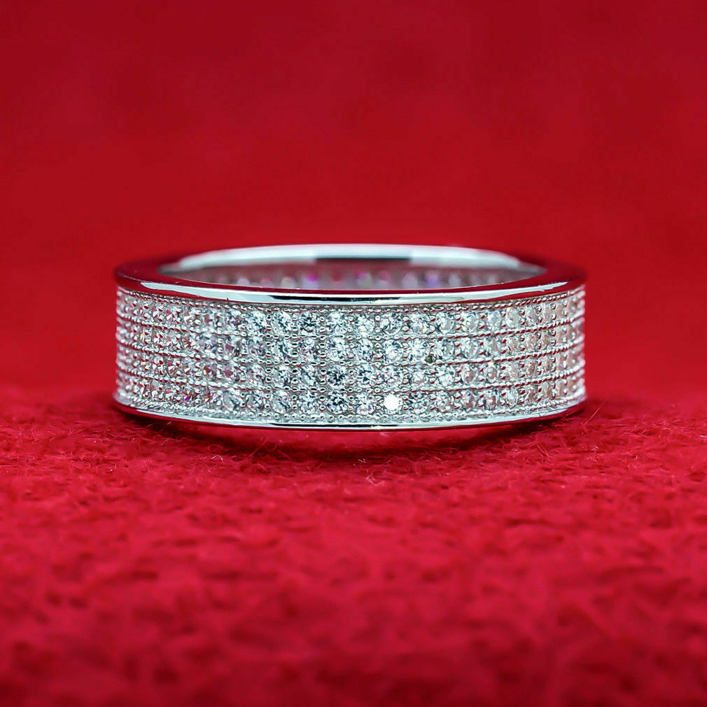 4Ct Round Cut DVVS1 Diamond Full Eternity Wide Wedding Band 14K White Gold Over
